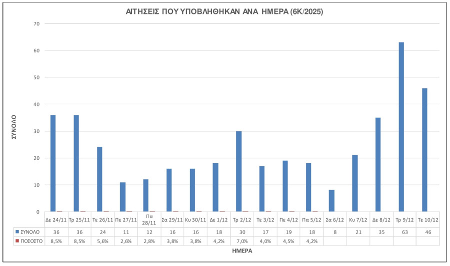 Αιτήσεις που υποβλήθηκαν ανά ημέρα
