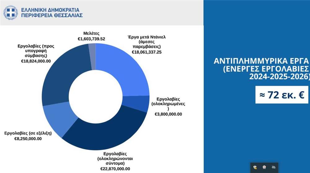 1. Από αυτά, έργα προϋπολογισμού 18 εκ. ευρώ που ολοκληρώθηκαν αφορούν εργασίες προσωρινής αποκατάστασης αναχωμάτων και λοιπών υποδομών σε περισσότερες από 110 θέσεις σε ολόκληρο το Νομό, αμέσως μετά το καταστροφικό πέρασμα του Ντάνιελ.