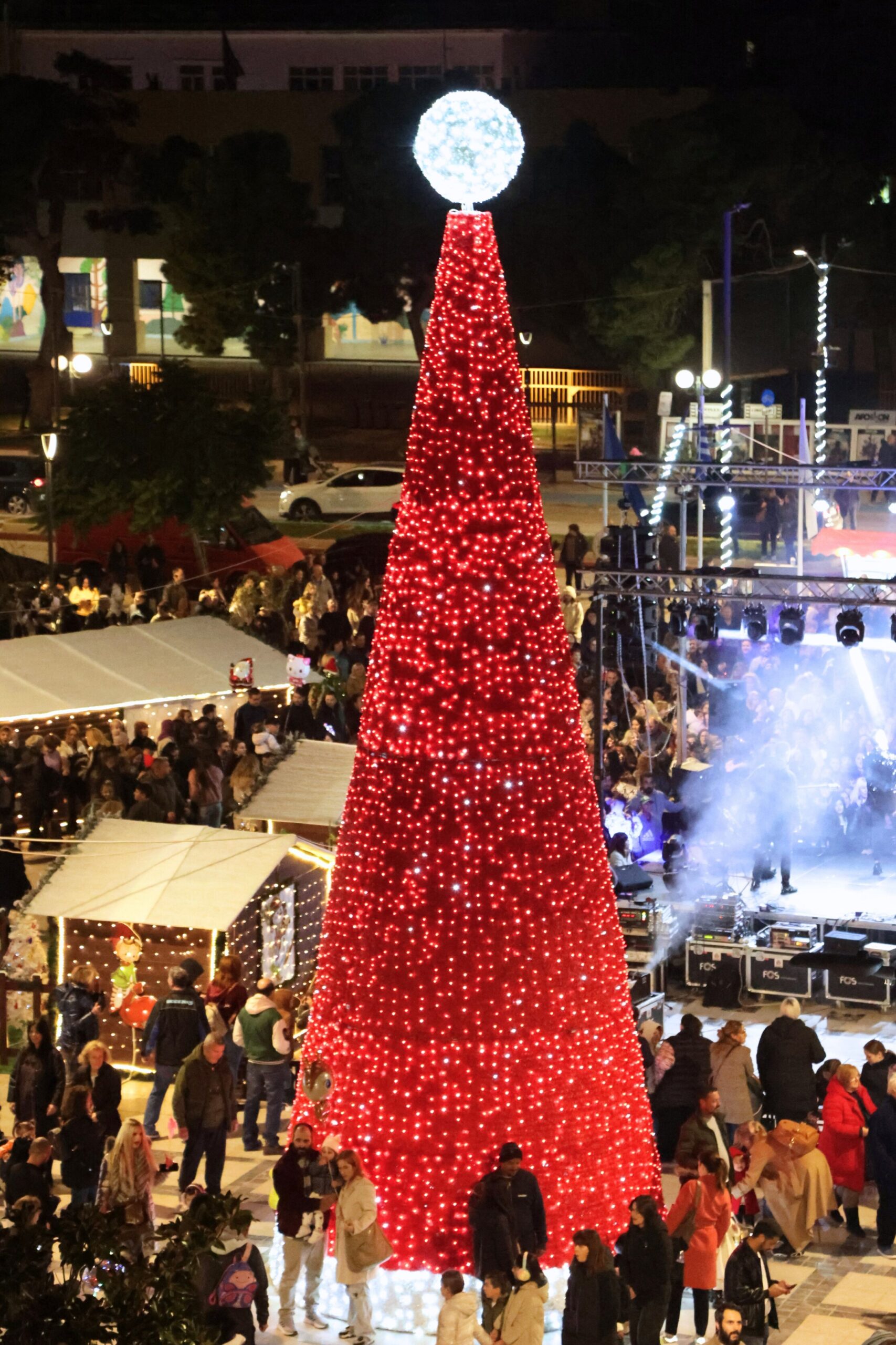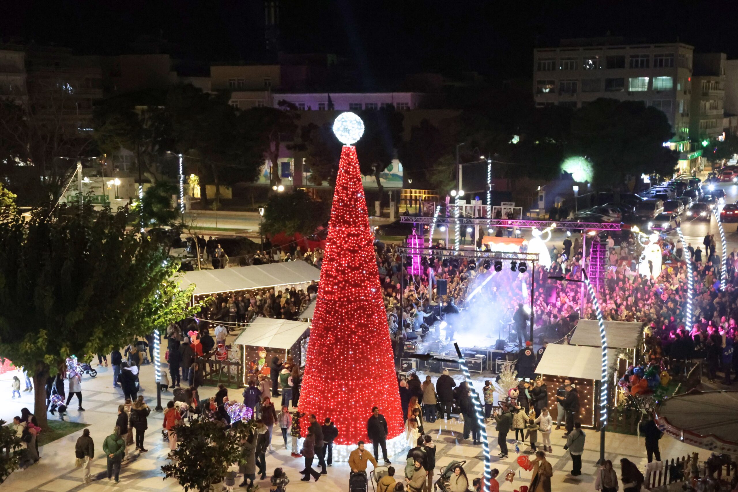 Το κεντρικό σύμβολο των φετινών εορτών, το εντυπωσιακό Χριστουγεννιάτικο Δέντρο, άναψε μέσα σε χειροκροτήματα και ενθουσιασμό, δίνοντας το σύνθημα για την έναρξη των εκδηλώσεων. Ο στολισμός με τα πολύχρωμα φώτα και τις κατασκευές μετέτρεψαν το κέντρο της πόλης σε έναν χώρο γιορτής και χαράς, για μικρούς και μεγάλους.