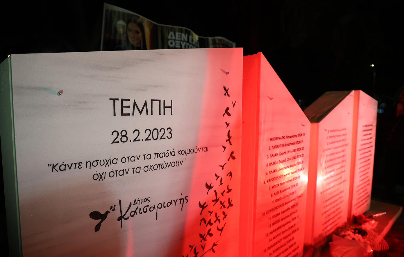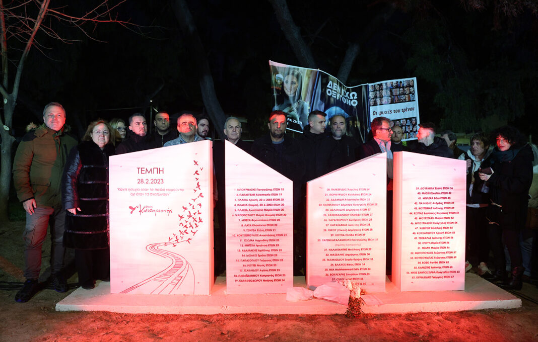 Μέσα σε κλίμα έντονης συναισθηματικής φόρτισης και λίγες ημέρες πριν από τη συμπλήρωση τριών χρόνων από το πολύνεκρο δυστύχημα των Τεμπών, έγιναν τα αποκαλυπτήρια του πρώτου επίσημου μνημείου στη μνήμη των θυμάτων στην Καισαριανή.