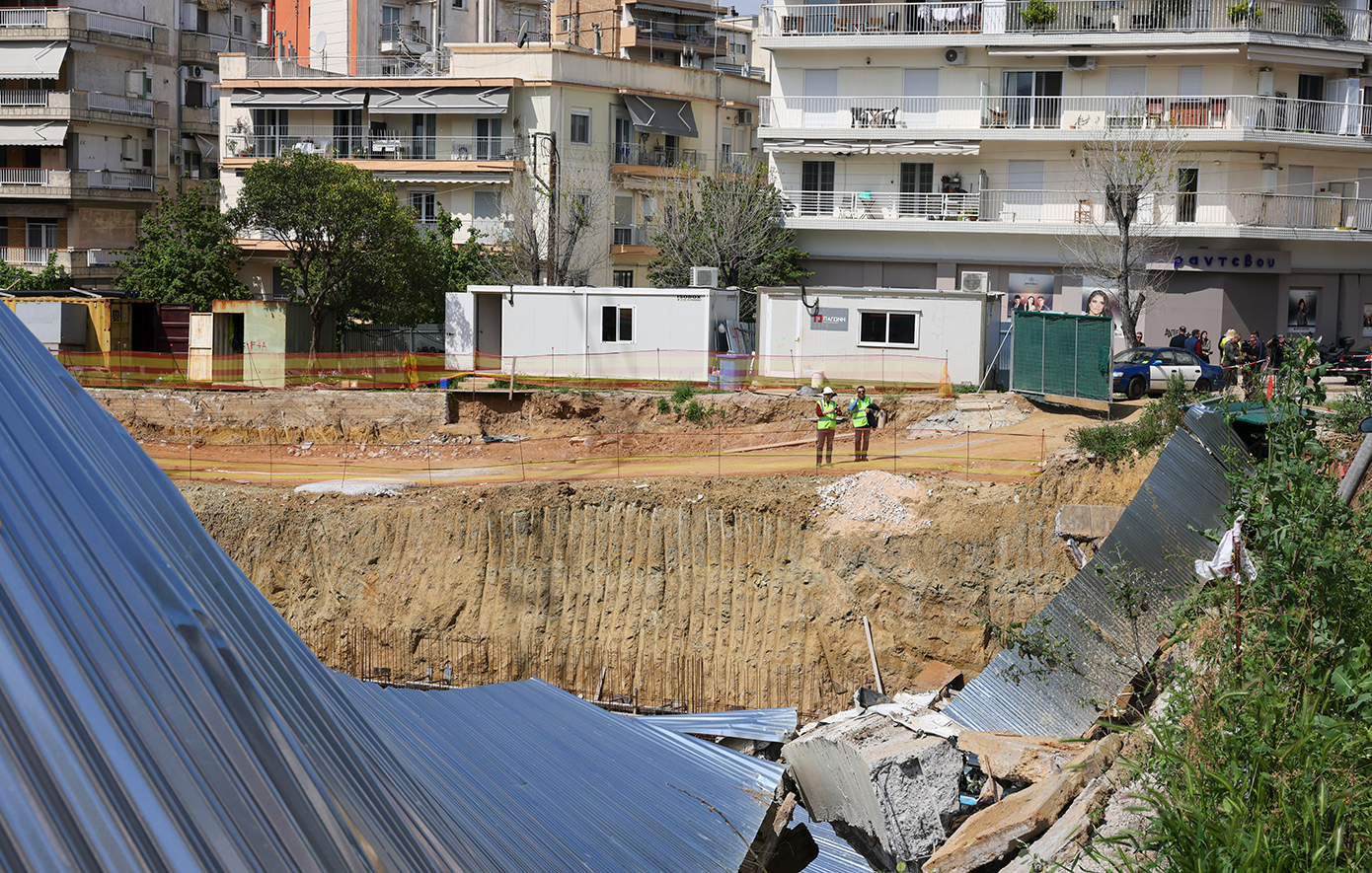 Μεγάλη ήταν η καθίζηση που σημειώθηκε τη Δευτέρα 20 Απριλίου σε εργοτάξιο στους Στάβλους Παπάφη στην περιοχή Τούμπας, στη Θεσσαλονίκη, παρασύροντας με εκκωφαντικό θόρυβο τμήμα του δρόμου και σταθμευμένα οχήματα.