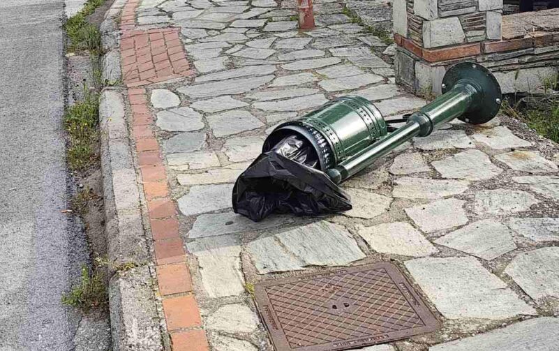 Νέο κρούσμα βανδαλισμού καταγράφηκε το πρωί της περασμένης Παρασκευής στην περιφερειακή οδό Δημάρχου Νίκου Αγγελίδη, όπου άγνωστοι ξήλωσαν από τη βάση τους τα καδάκια απορριμμάτων και τα έριξαν στο έδαφος.