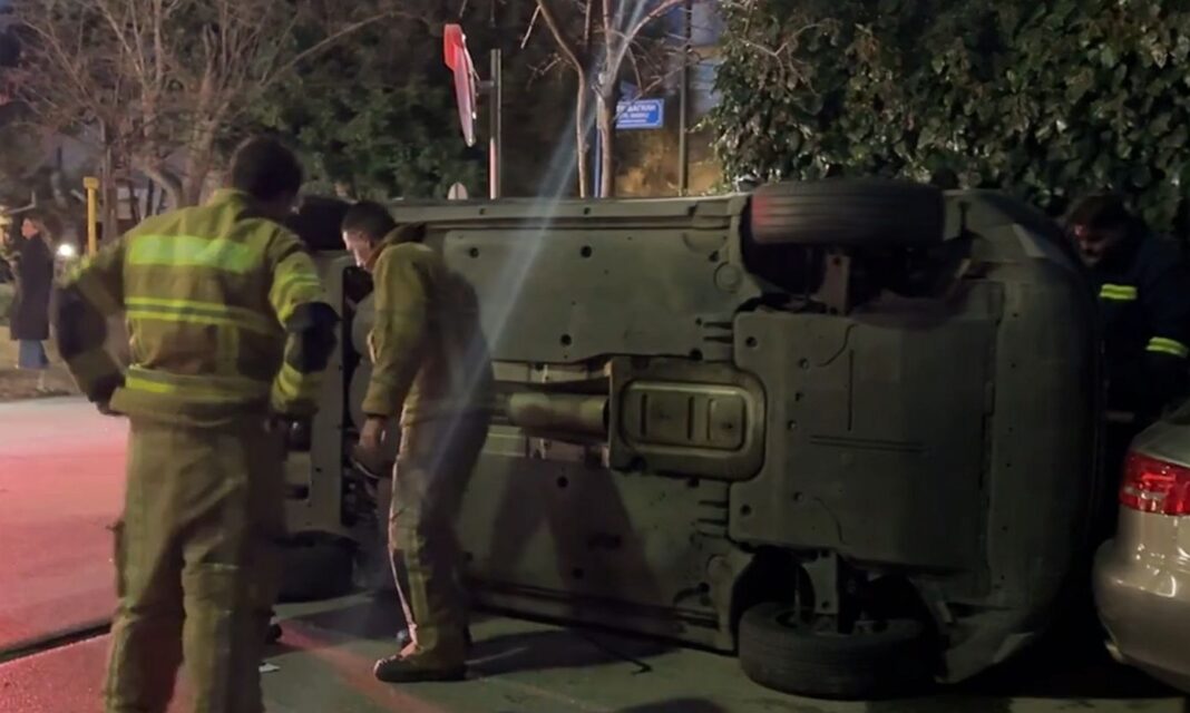 Ανατροπή αυτοκινήτου και εγκλωβισμός δύο ατόμων σε τροχαίο στην Κηφισιά – Δείτε το βίντεο