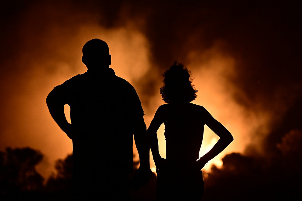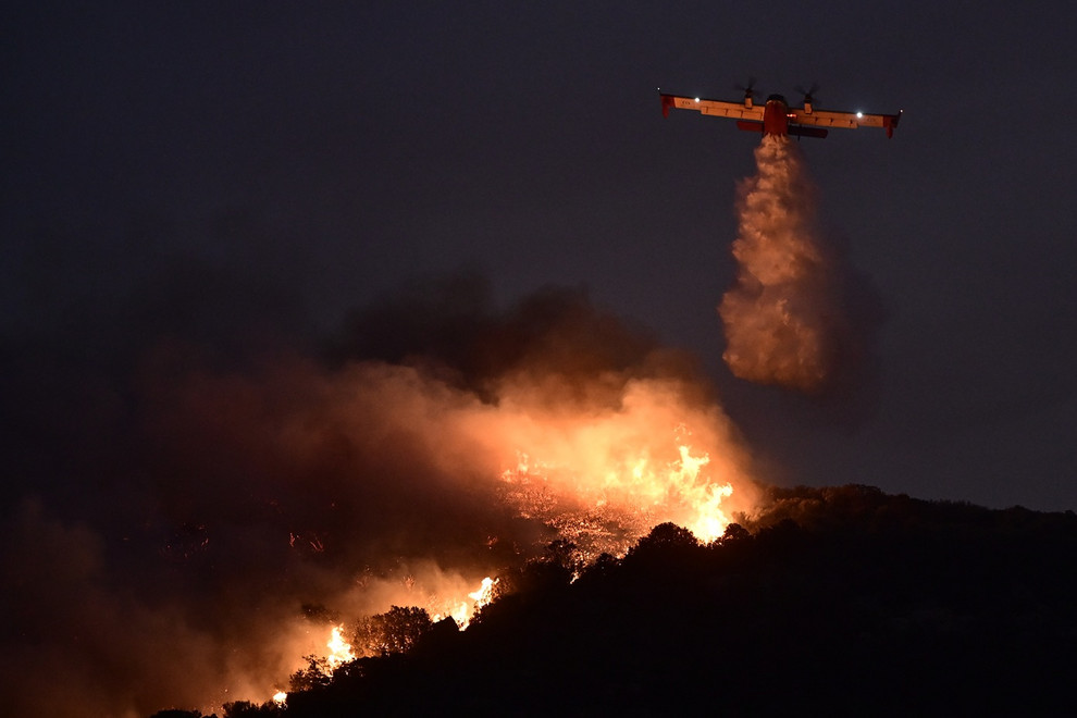 Ακόμη και μετά τη δύση του ηλίου, τα εναέρια μέσα δεν είχαν εγκαταλείψει τη μάχη για την κατάσβεση της πυρκαγιάς, αφού οι ιδιαίτερα ισχυροί άνεμοι δεν επιτρέπουν στους πυροσβέστες να ελέγξουν τη φωτιά χωρίς τη χρήση αεροσκαφών.