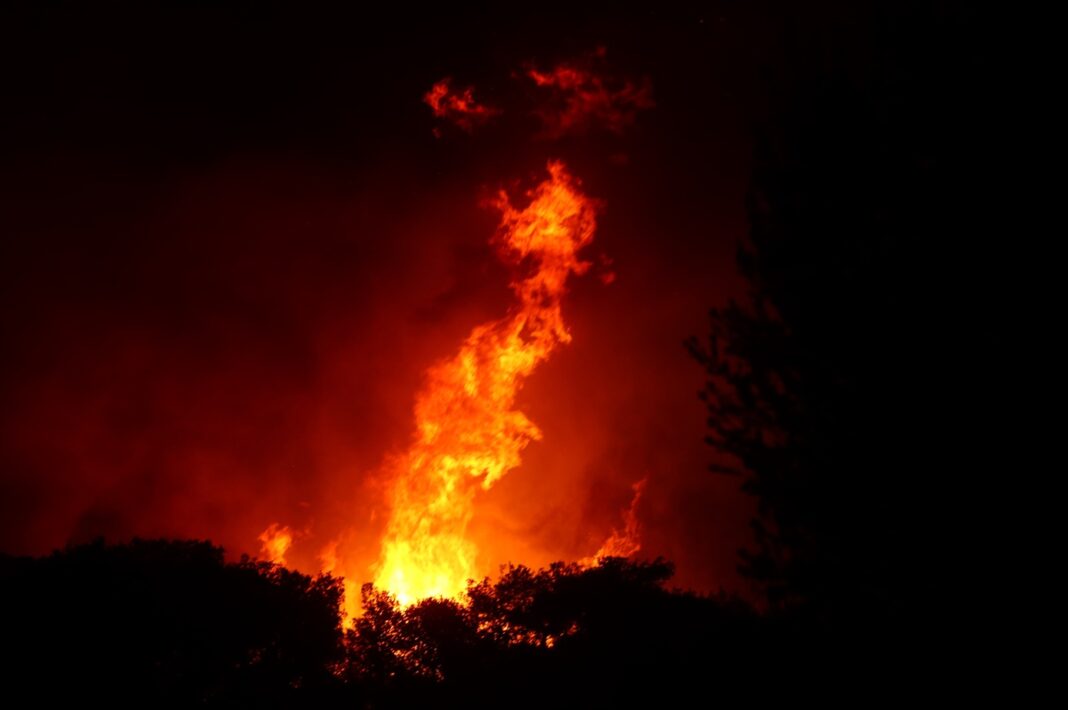 Ακόμη και μετά τη δύση του ηλίου, τα εναέρια μέσα δεν είχαν εγκαταλείψει τη μάχη για την κατάσβεση της πυρκαγιάς, αφού οι ιδιαίτερα ισχυροί άνεμοι δεν επιτρέπουν στους πυροσβέστες να ελέγξουν τη φωτιά χωρίς τη χρήση αεροσκαφών.