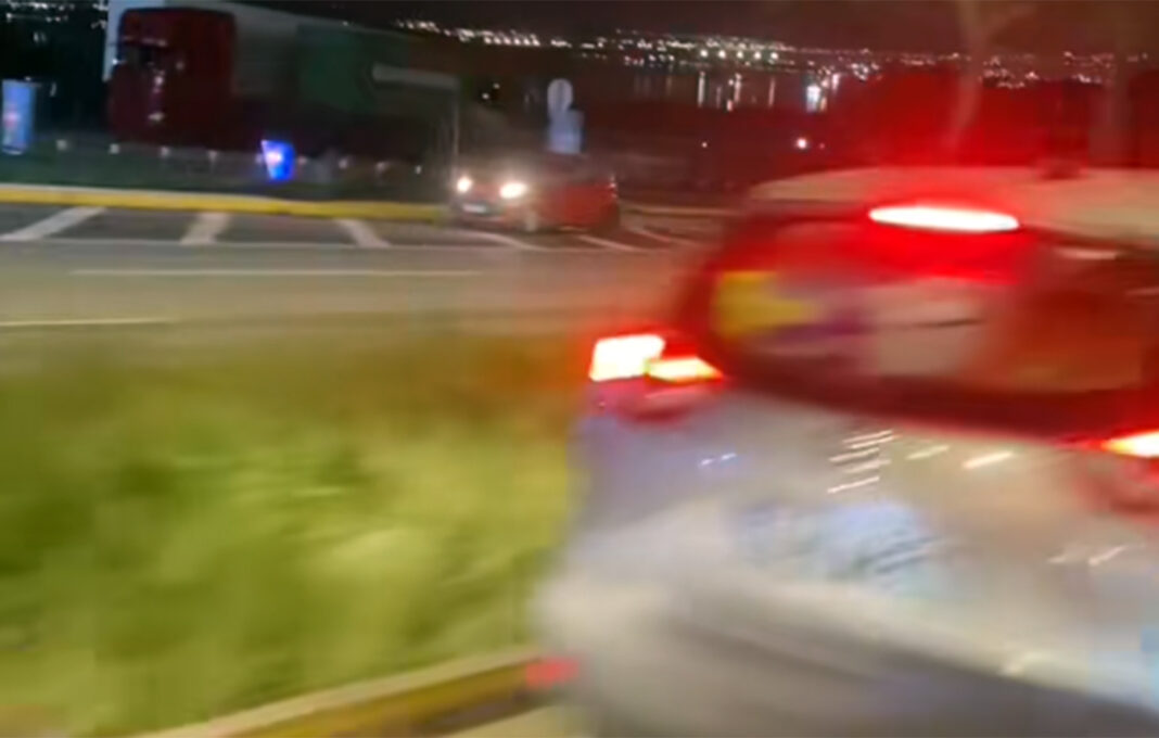 Όπως φαίνεται στο βίντεο που κατέγραψε αναβάτης μηχανής, το κόκκινο αυτοκίνητο κινήθηκε για περίπου 1,5 χλμ. με την όπισθεν ενώ βρισκόταν στη δεξιά λωρίδα κυκλοφορίας στο ρεύμα προς Πειραιά.