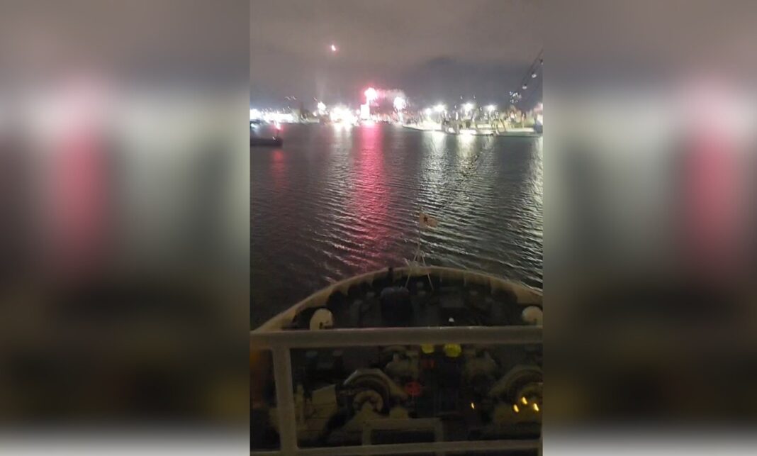 Με πυροτεχνήματα και πολλές ευχές μέσω ασυρμάτου, υποδέχθηκε το λιμάνι του Πειραιά, το πλοίο που έκανε ποδαρικό για το 2026.