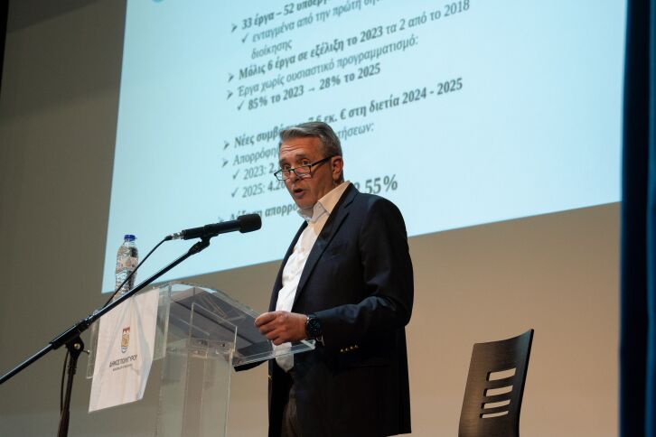 Εμείς δεν παραλάβαμε έναν ισχυρό Δήμο. Παραλάβαμε έναν Δήμο κουρασμένο, ανοργάνωτο και εκτεθειμένο. Κι αντί να ψάξουμε άλλοθι, πιάσαμε δουλειά. Ξεμπλοκάραμε έργα, που είχαν εγκαταλειφθεί. Σώσαμε χρηματοδοτήσεις, που κινδύνευαν να χαθούν και αποδείξαμε στην πράξη ότι όταν υπάρχει σχέδιο, επιμονή και καθαρή διοίκηση, τα έργα προχωρούν!” επεσήμανε ο Δήμαρχος, υπογραμμίζοντας ότι η απορρόφηση των χρηματοδοτήσεων για έργα αυξήθηκε την τελευταία διετία 98,55%!