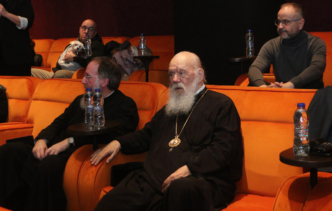 Την κινηματογραφική ταινία του Γιάννη Σμαραγδή «Καποδίστριας», η οποία πραγματεύεται την πορεία και τη ζωή του πρώτου και μοναδικού Κυβερνήτη της Ελλάδας, παρακολούθησε χθες το απόγευμα στον Κινηματογράφο «Αθήναιον», στους Αμπελόκηπους, ο Αρχιεπίσκοπος Αθηνών και πάσης Ελλάδος Ιερώνυμος, με τον σκηνοθέτη και τον αντιπρόεδρο της εταιρείας διανομής κινηματογραφικών ταινιών «Tanweer», Γιάννη Καλφακάκο.