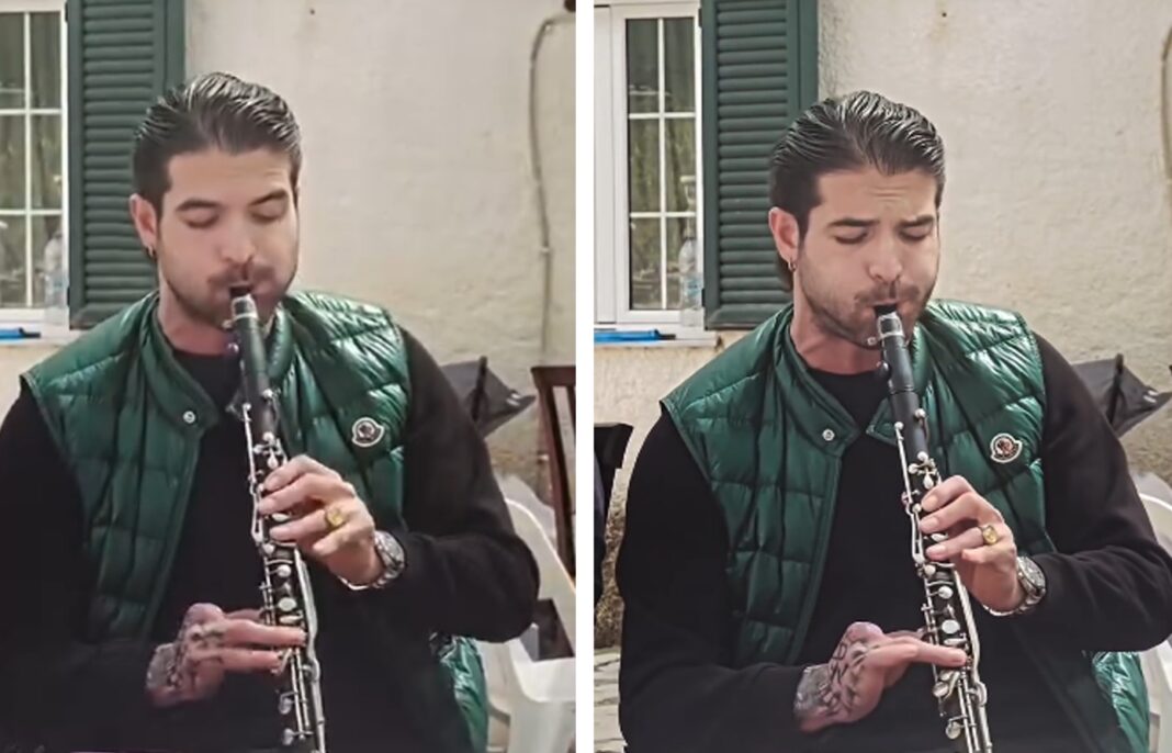 «Κάπου είχαμε μείνει πέρυσι, βρε παιδιά, τέτοια μέρα… Εδώ είμαι πάλι», έγραψε ο Άρης Μουγκοπέτρος στο βίντεο που παίζει κλαρίνο.