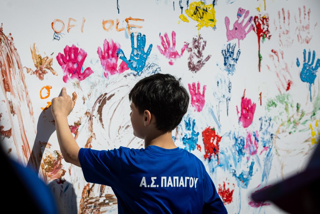 Ξεχωριστή στιγμή αποτέλεσε η δράση μετά τον παιδικό αγώνα, όπου τα παιδιά αποτύπωσαν τις παλάμες τους σε έναν μεγάλο μουσαμά με τα χρώματα του αυτισμού, στέλνοντας μήνυμα αποδοχής και συμπερίληψης. Παράλληλα, ο Τομέας Κοινωνικής Πρόνοιας και Νεότητας του Ελληνικού Ερυθρού Σταυρού προσέφερε δώρα στα παιδιά των τμημάτων Champs.