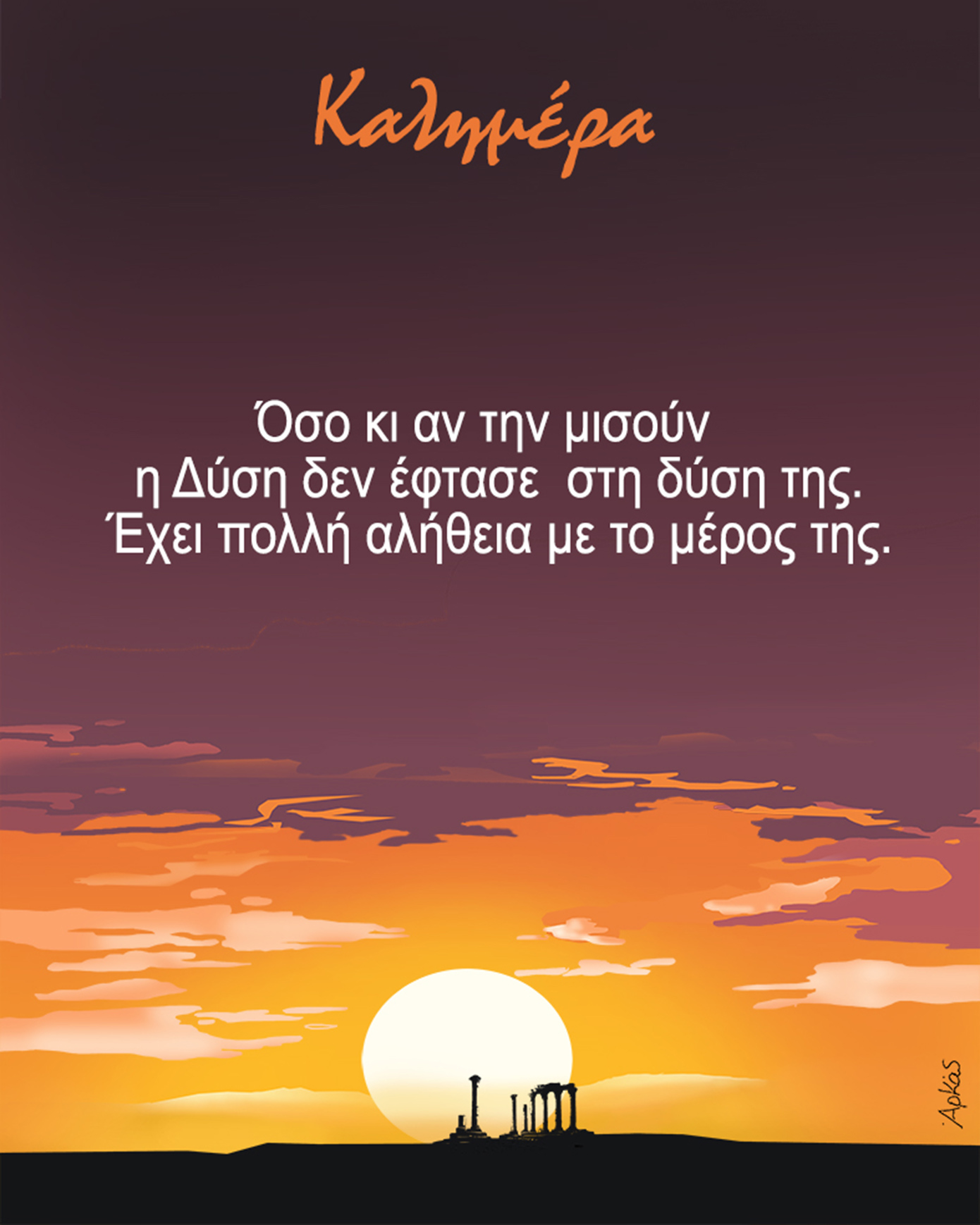 Αρκάς: Παρά το μίσος, η Δύση δεν έχει δύσει. Η αλήθεια είναι με το μέρος της.