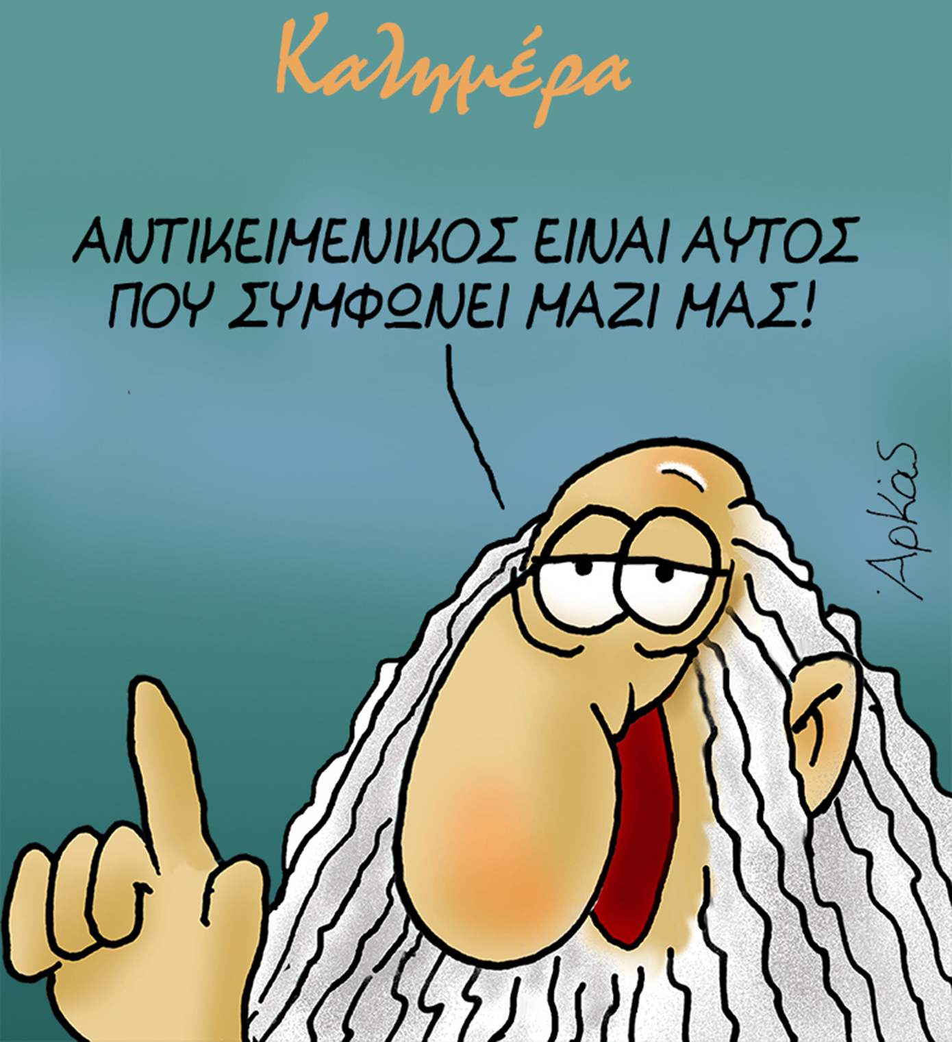 Την καθιερωμένη του «καλημέρα» είπε ο Αρκάς με το νέο του σκίτσο, σχολιάζοντας με καυστικό τρόπο την έννοια της αντικειμενικότητας.