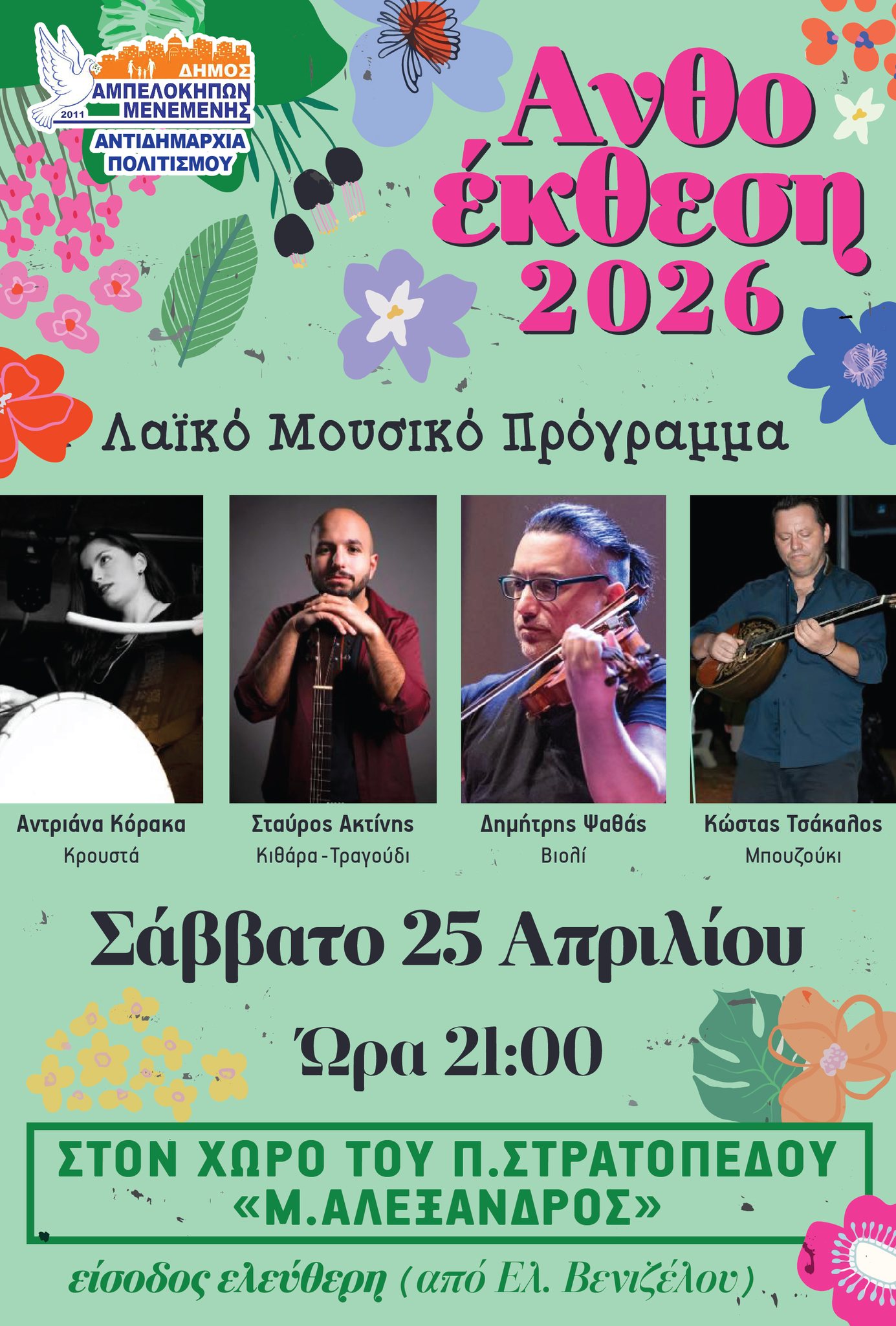 Αύριο η μουσική εκδήλωση στην Ανθοέκθεση του Δ. Αμπελοκήπων-Μενεμένης