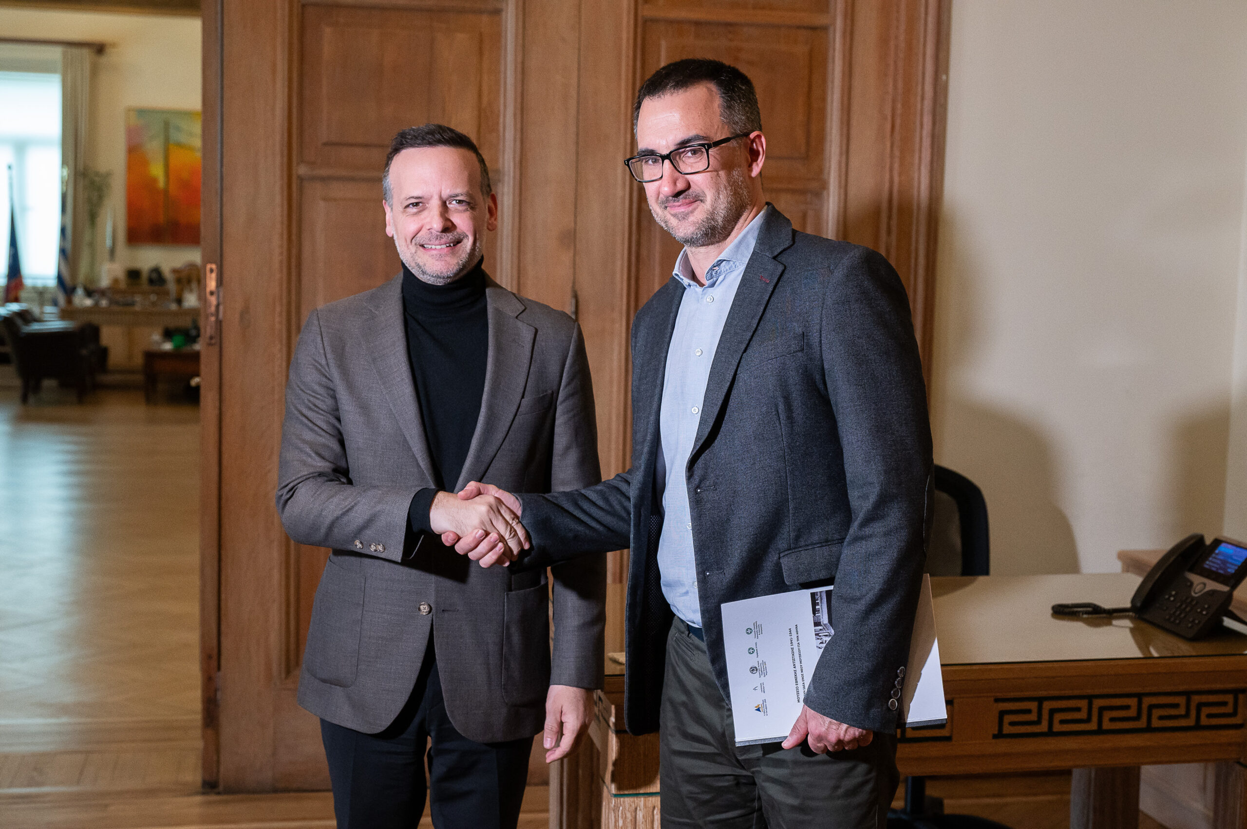 Ο ιστορικός Μενέλαος Χαραλαμπίδης ευχαρίστησε τον Δήμαρχο Αθηναίων για την ουσιαστική συνάντηση και υπογράμμισε: «Στόχος του Μουσείου Εθνικής Αντίστασης θα είναι να λειτουργήσει ως ένα πολυεργαλείο. Θα μπορεί επίσης να είναι ο φορέας ο οποίος, μέσα από ερευνητικά προγράμματα, να τεκμηριώσει επιστημονικά τις ανθρώπινες απώλειες και τις υλικές καταστροφές που είχαμε κατά τη διάρκεια του Β’ Παγκοσμίου Πολέμου και άρα να δώσει στέρεα επιχειρήματα σε οποιαδήποτε νομική, οικονομική ή πολιτική διεκδίκηση έχει το ελληνικό κράτος από το αντίστοιχο γερμανικό».