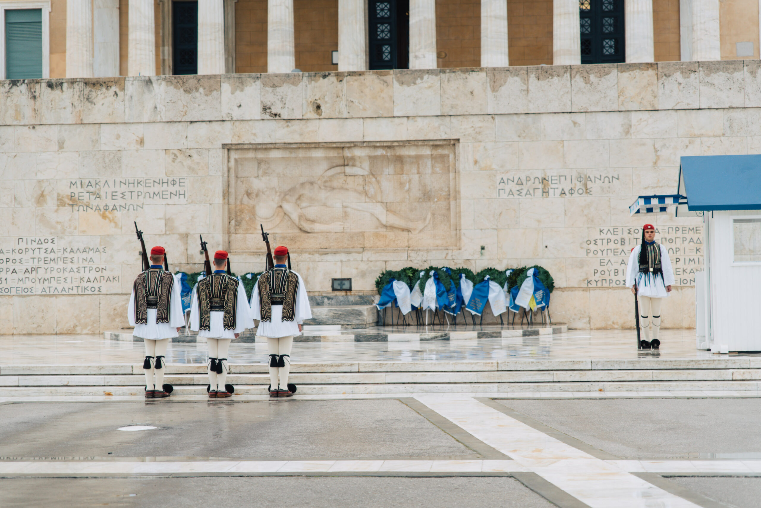 Προηγήθηκε η ανάκρουση του εθνικού ύμνου και κατάθεση στεφάνων στο Μνημείο του Άγνωστου Στρατιώτη από τον Δήμαρχο Αθηναίων, Χάρη Δούκα, καθώς και εκπροσώπους της πολιτικής και στρατιωτικής ηγεσίας.