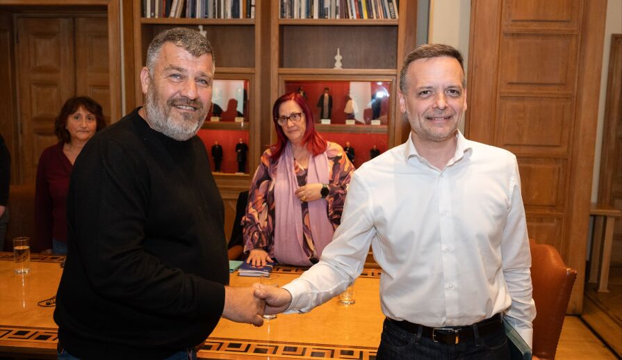 Ο Δήμαρχος Αθηναίων, Χάρης Δούκας, συναντήθηκε χθες, Πέμπτη 16/4, με το προεδρείο της Π.Ο.Ε.-Ο.Τ.Α., στο Δημαρχείο Αθηνών.