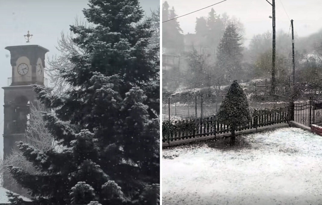 Χιονόπτωση καταγράφηκε επίσης στα Τζουμέρκα, με τη θερμοκρασία να πέφτει στο μηδέν.