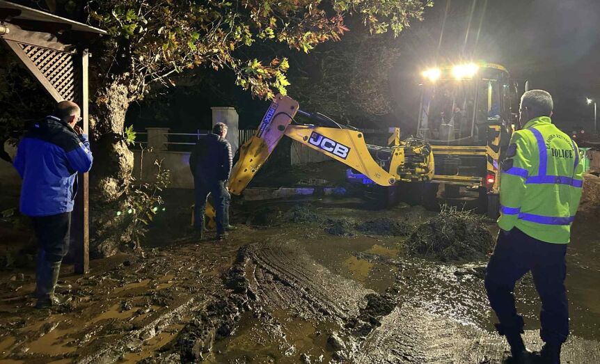 Από τη πρώτη στιγμή της κακοκαιρίας, μηχάνημα έργου JCB και φορτηγό του Δήμου επιχείρησαν στο σημείο για καθαρισμό και αποκατάσταση της οδικής ασφάλειας, ενώ περιπολικό της αστυνομίας με δύο αστυφύλακες ρύθμιζαν την κυκλοφορία.