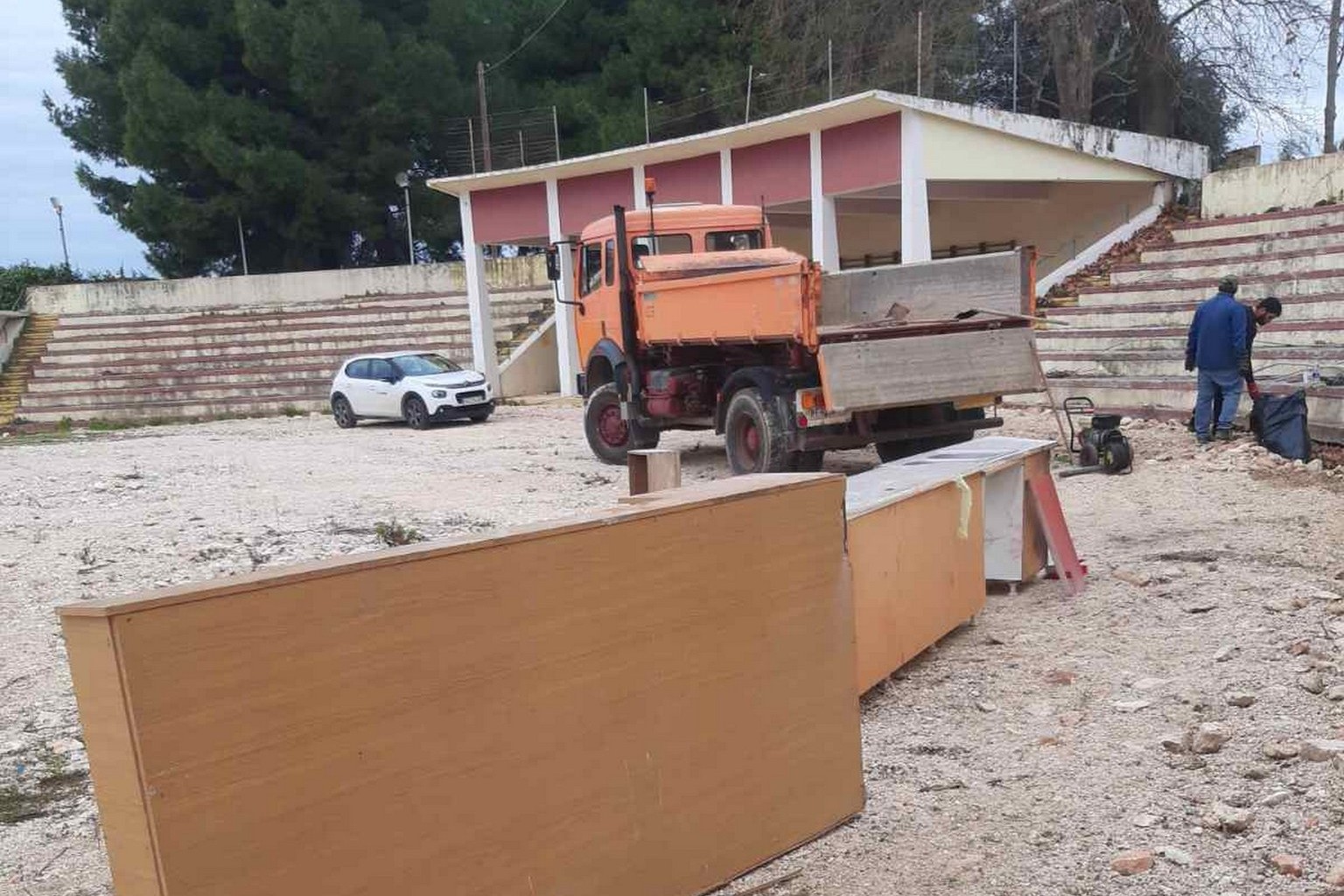 Ξεκίνησαν οι εργασίες αποκατάστασης του υφιστάμενου Ανοιχτού Αθλητικού Κέντρου Κουρκουμελάτων της Κοινότητας Μεταξάτων, με την έναρξη των καθαιρέσεων στα υπάρχοντα κτίρια του γηπέδου.