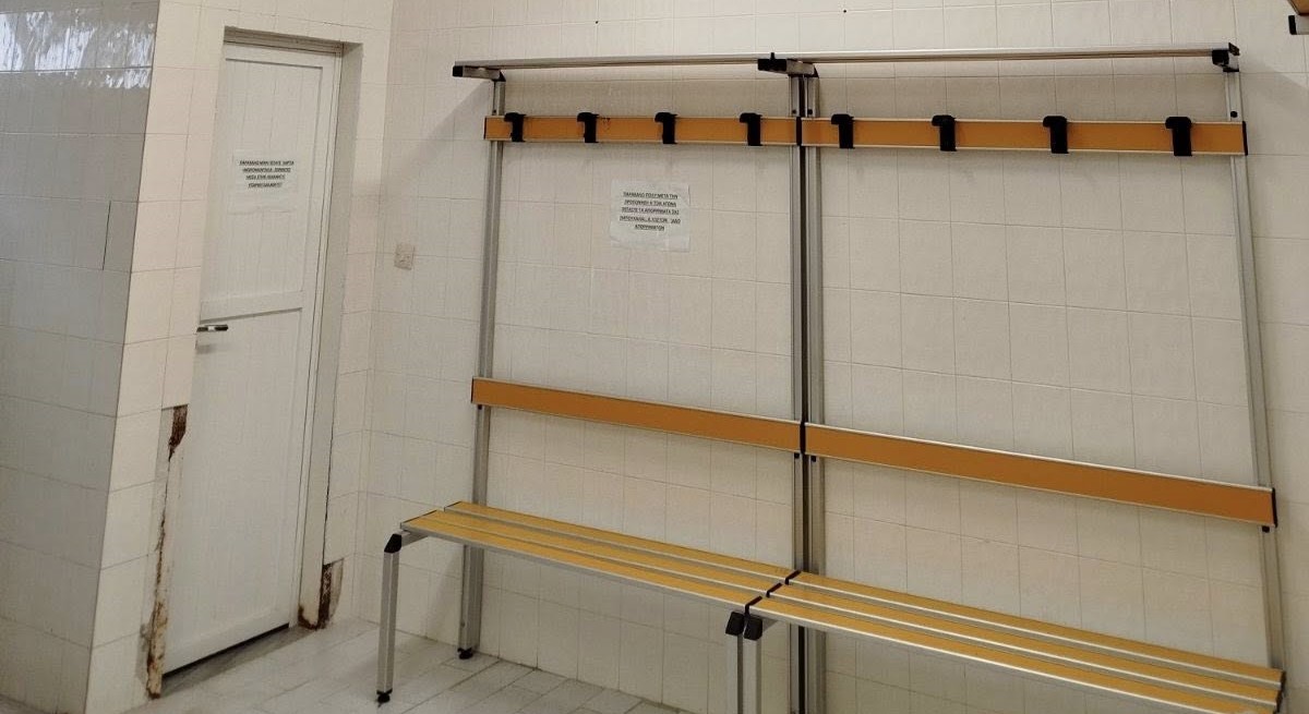 Αποκαταστάθηκαν οι εσωτερικές τοιχοποιίες , τα αποδυτήρια, οι διάδρομοι, ο χώρος των κερκίδων, τα διαχωριστικά κιγκλιδώματα , τα υδραυλικά συστήματα των αποδυτηρίων και των χώρων υγιεινής ενώ επιτεύχθηκε η στεγανοποίηση της στέγης με παρέμβαση στο φωταγωγό , στις υδρορροές και στα πάνελ της εγκατάστασης.