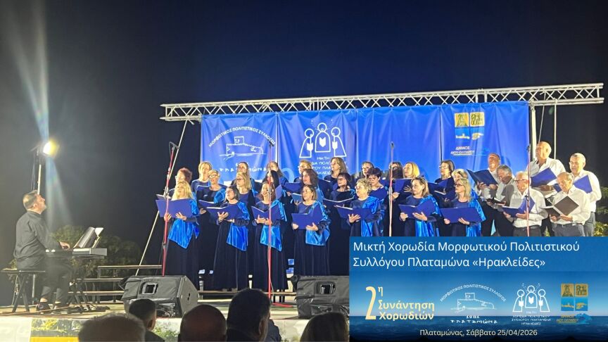 Εντυπωσίασαν το κοινό οι ερμηνείες των έξι χορωδιών που συμμετείχαν στη 2η Συνάντηση Χορωδιών Πλαταμώνα, η οποία διοργανώθηκε το Σάββατο 25 Απριλίου 2026, από τον Μορφωτικό Πολιτιστικό Σύλλογο Πλαταμώνα, τη Μικτή Χορωδία του Πολιτιστικού Συλλόγου Πλαταμώνα «Ηρακλείδες» και τον Δήμο Δίου-Ολύμπου.