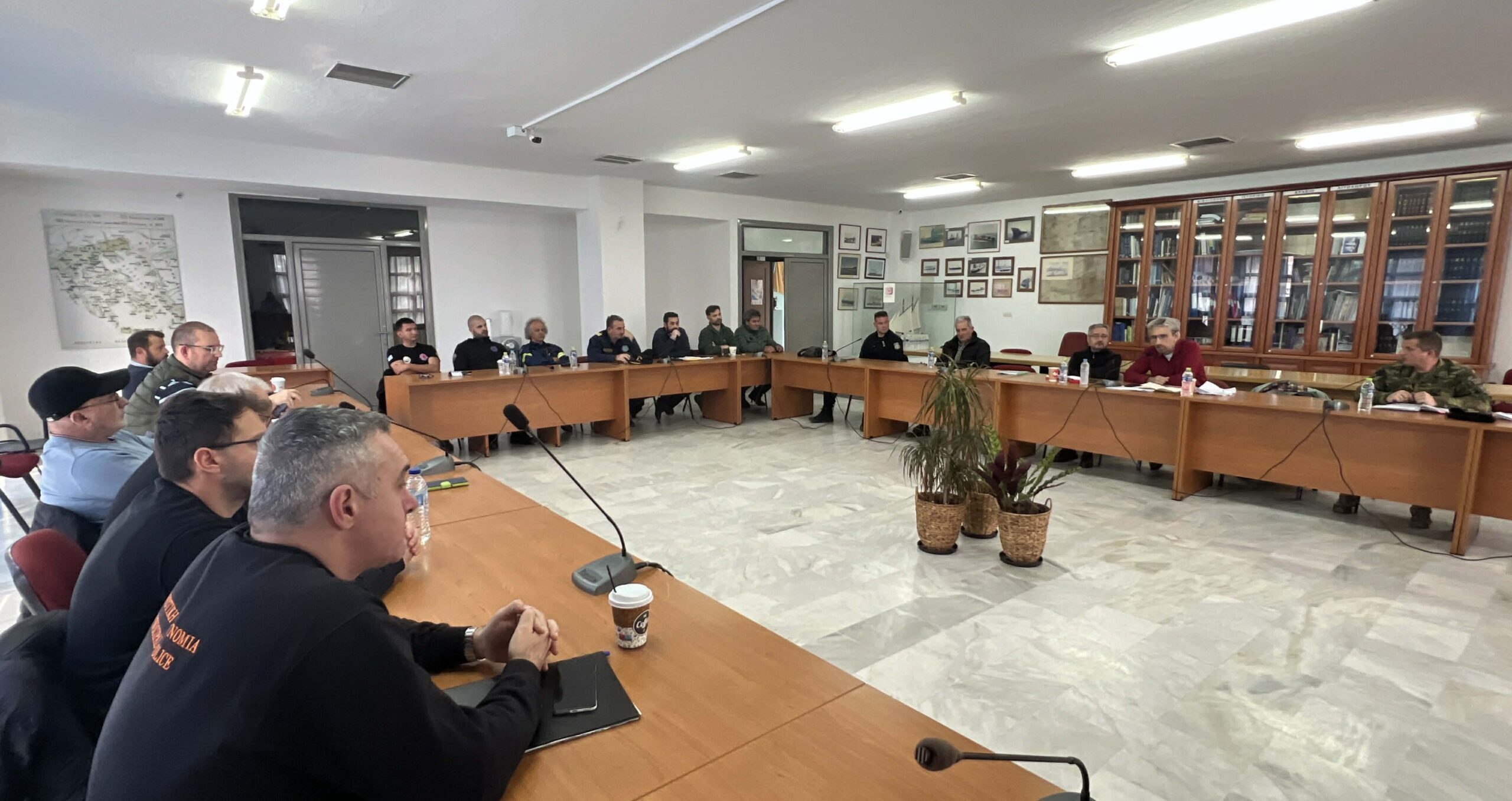 Η σύσκεψη ολοκληρώθηκε με την άσκηση επί χάρτου «Αίθων 2026», που αφορούσε τη διαχείριση δασικής πυρκαγιάς, με τη συμμετοχή όλων των τοπικών επιχειρησιακά εμπλεκόμενων φορέων.