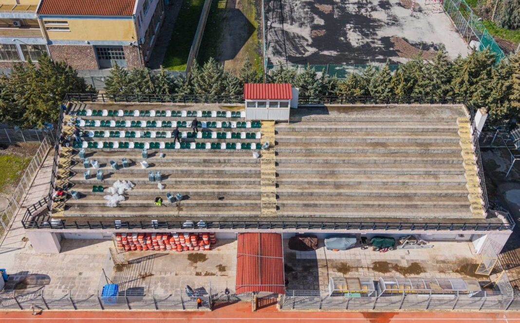 Παράλληλα προχωρούν οι εργασίες για την ολοκλήρωση της ανακαίνισης του δημοτικού Σταδίου «Κ. Κεντέρης» και αυτή τη στιγμή, μετά την εγκατάσταση των νέων καθισμάτων στις κερκίδες, τα συνεργεία δουλεύουν στους χώρους των αποδυτηρίων. Ακριβώς δίπλα από το στάδιο της Καλλονής, προχωρά με πολύ γρήγορους ρυθμούς και η ανακατασκευή του γηπέδου 8Χ8 (δίπλα από το ΕΠΑΛ). Εγκαταστάθηκε ήδη ο νέος τάπητας, οι πάγκοι και οι εστίες και εκτιμάται πως μέσα στις επόμενες ημέρες, ένα ακόμη αθλητικό έργο του δήμου θα έχει ολοκληρωθεί, μαζί με εκείνο του γηπέδου της Άγρας.