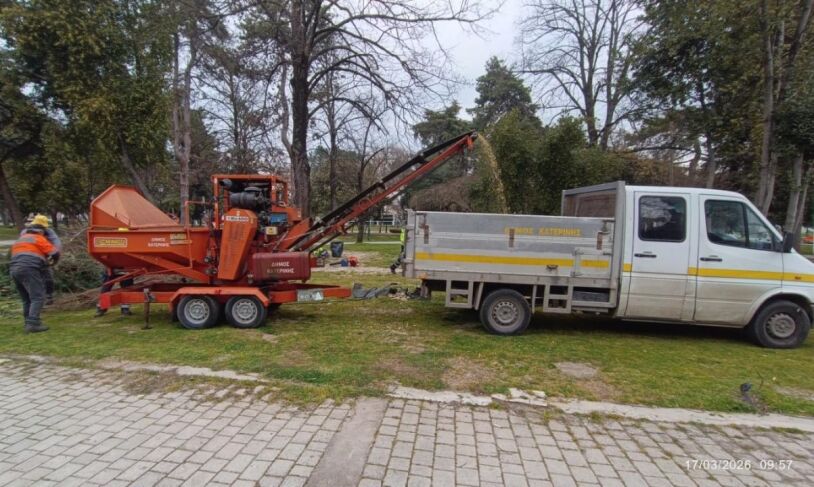 Παρουσίαση καλής πρακτικής του Δήμου Κατερίνης στην κομποστοποίηση κλαδιών και χόρτων (θρυμματιστής) από γεωτεχνικούς του Δήμου, σε μαθητές του Γυμνασίου Κ. Μηλιάς έγινε χτες, Τρίτη 17 Μαρτίουμ στο Δημοτικό Πάρκο.