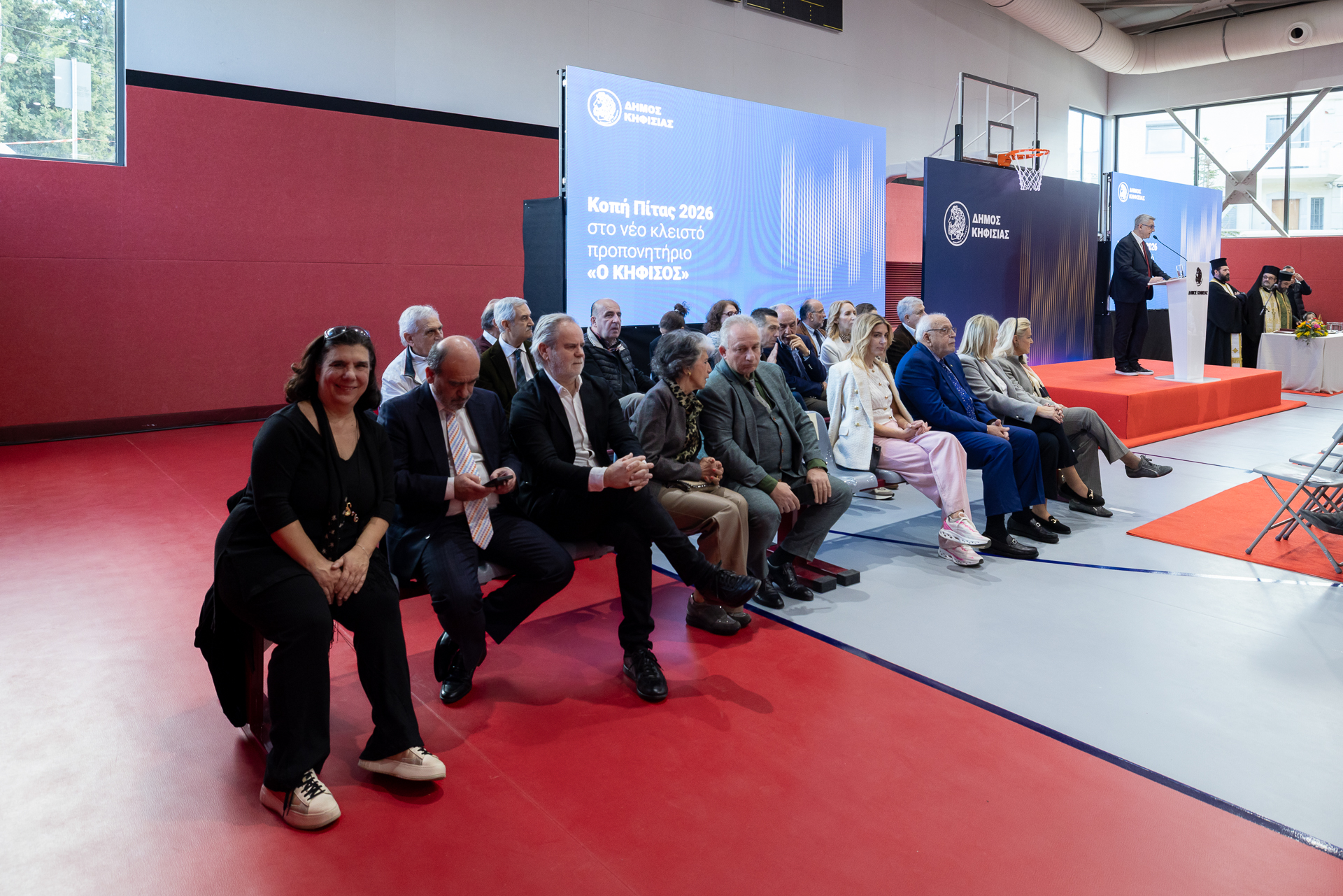 Νωρίτερα ο εκπρόσωπος του Σεβασμιότατου Μητροπολίτη Κηφισίας, Αμαρουσίου, Ωρωπού και Μαραθώνος, κ.κ. Κύριλλου, Πανοσιολογιώτατος Αρχιμανδρίτης και ιεροκήρυκας της Μητροπόλεως π. Νικάνωρ Καραγιάννης, με τους εφημέριους της Ενορίας της Αγ. Τριάδος Ν. Κηφισιάς & Αγίου Λουκά Αδαμών, πατέρες Σέργιο και Κωνσταντίνο αντίστοιχα, τέλεσαν τα εγκαίνια του νέου Αθλητικού Κέντρου «Ο ΚΗΦΙΣΟΣ». Στη συνέχεια ο Δήμαρχος Κηφισιάς κ. Ξυπολυτάς, ο δωρητής του έργου κ. Ιωάννης Μυτιληναίος, ο Αντιδήμαρχο Καθημερινότητας, Μελετών, Υποδομών & Νομικής Υπηρεσίας κ. Γιάννης Διονυσιώτης, η Εντεταλμένη Σύμβουλος Αθλητισμού κ. Λίλα Δραγώνα και η Νομική Σύμβουλος του Δημάρχου κα Σάντυ Πατρινού μετέβησαν στην είσοδο του κλειστού, όπου σε κλίμα ενθουσιασμού έκοψαν την κορδέλα των εγκαινίων.