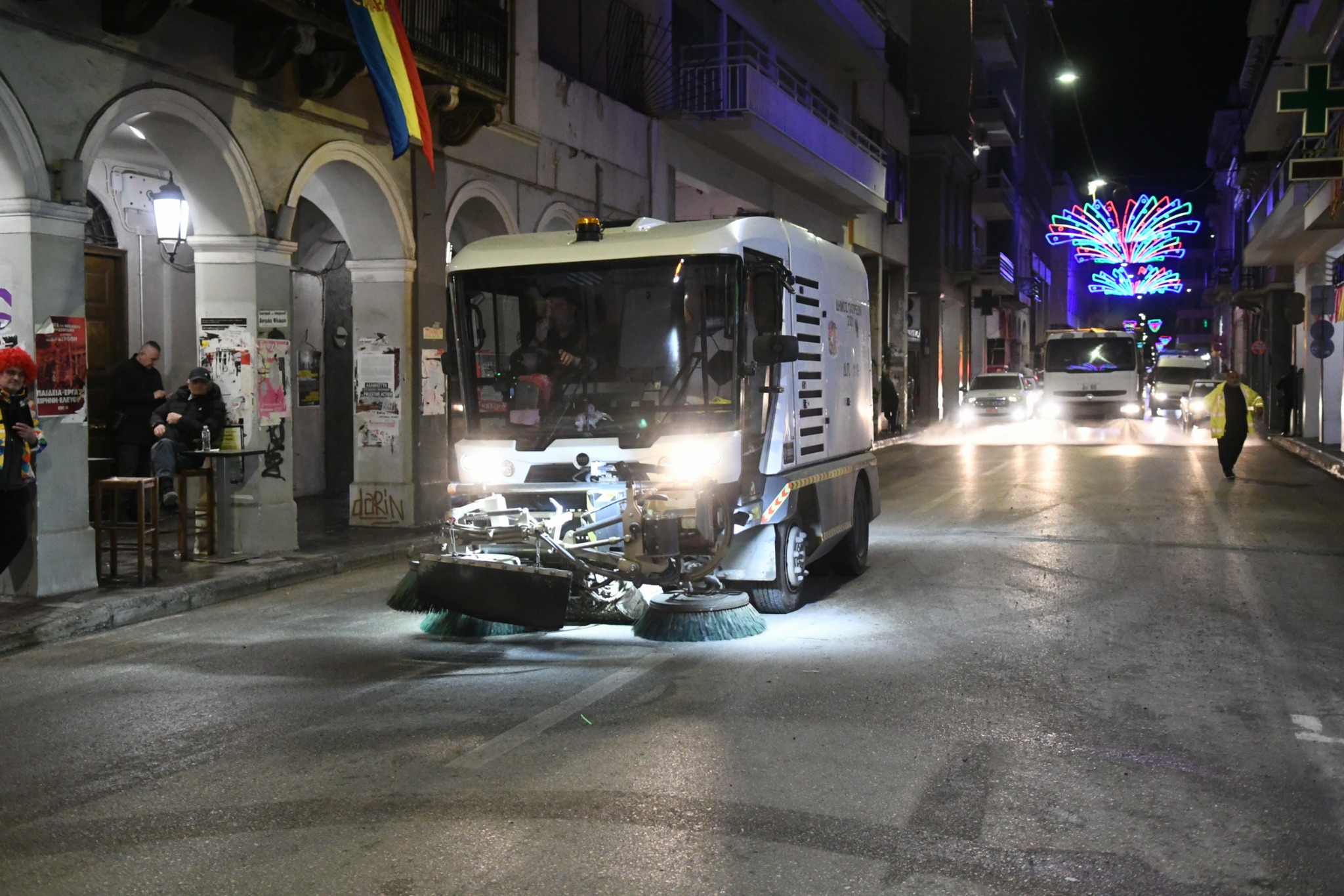 Οι εργαζόμενοι της Καθαριότητας του Δήμου Πατρέων με το μηχανολογικό εξοπλισμό, έδωσαν μάχη από το βράδυ του Σαββάτου, αμέσως μετά την λήξη της Νυχτερινής Ποδαράτης, μέχρι το πρωί της Κυριακής για να παραδώσουν την πόλη καθαρή για την Μεγάλη Παρέλαση του Πατρινού Καρναβαλιού 2026 και την Τελετή Λήξης του. Παρόντα στην επιχείρηση καθαριότητας και μέλη της Δημοτικής Αρχής για να συντονίσουν όπου χρειάστηκε.