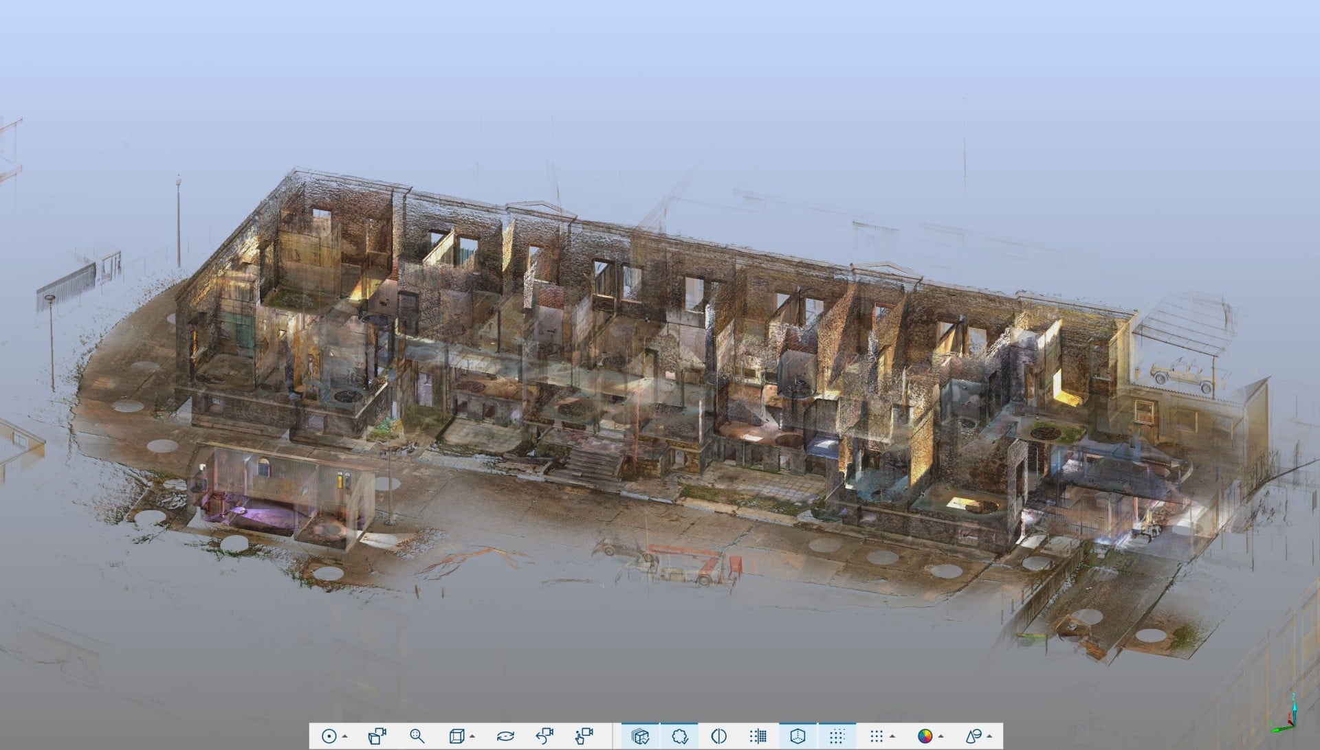 Έπειτα, η επεξεργασία των παραπάνω δεδομένων σε συνδυασμό με τις φωτογραφίες, οδήγησε στη συνένωση των σαρώσεων για τη δημιουργία ενός ενιαίου τρισδιάστατου μοντέλου του κτηρίου, αποτελούμενου από δισεκατομμύρια σημεία.