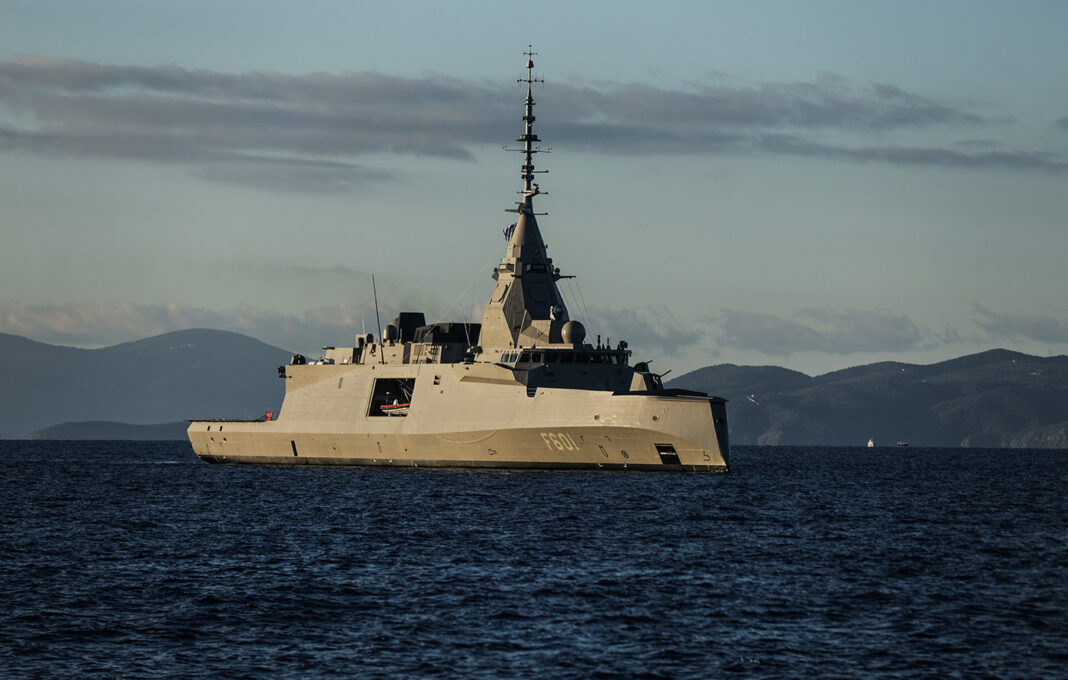 Υπενθυμίζεται ότι την υπερσύγχρονη ελληνική φρεγάτα Belharra –την πρώτη από τις τέσσερις που πρόκειται να ενταχθούν στον στόλο– υποδέχθηκαν την Πέμπτη με τιμητικό σχηματισμό δύο φρεγάτες, δύο ταχέα περιπολικά κατευθυνόμενων βλημάτων, δύο κανονιοφόροι και δύο σκάφη ανορθόδοξου πολέμου.