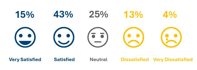 Αξίζει να σημειωθεί ότι σε επίπεδο συνολικής ικανοποίησης από το εργασιακό περιβάλλον, το 43% των γυναικών δηλώνει ικανοποιημένο και το 15% πολύ ικανοποιημένο, ενώ το 25% διατηρεί ουδέτερη στάση.