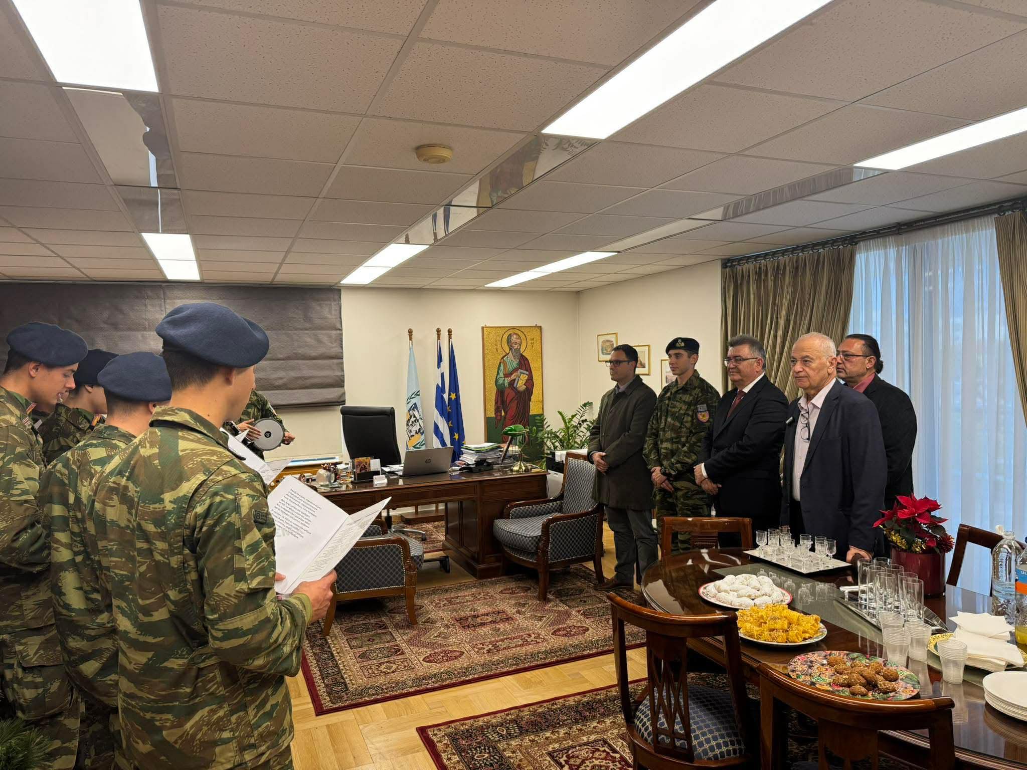 Η Παραμονή των Χριστουγέννων κύλησε μέσα σε εορταστικό κλίμα. Κάλαντα, ανταλλαγές ευχών, παιδικές φωνές ήχησαν στο Δημαρχείο και από το μεσημέρι και μετά οι ρυθμοί χαμήλωσαν, γιατί είμαστε κι εμείς άνθρωποι κι έχουμε ανάγκη να βρεθούμε με τους δικούς μας ανθρώπους, την οικογένειά μου που μου λείπει, αλλά και της λείπω.