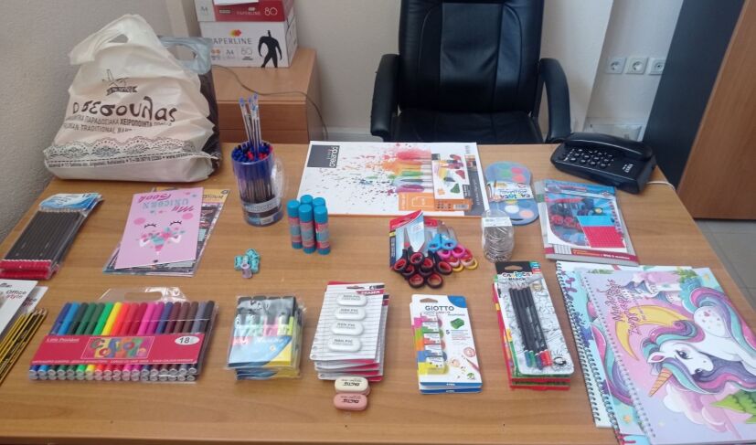 Χάρη στη γενναιόδωρη ανταπόκριση πολιτών και επιχειρήσεων της περιοχής, συγκεντρώθηκε σημαντική ποσότητα σχολικών ειδών (τσάντες, τετράδια, γραφική ύλη και λοιπά απαραίτητα εφόδια), τα οποία διανεμήθηκαν σε 40 περίπου οικογένειες που έχουν ανάγκη.