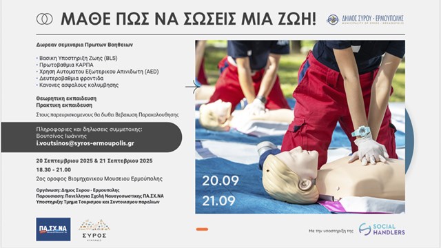 - Το σεμινάριο «Μάθε πώς να σώσεις μια ζωή» στη Σύρο ολοκληρώθηκε με μεγάλη επιτυχία και αθρόα συμμετοχή.