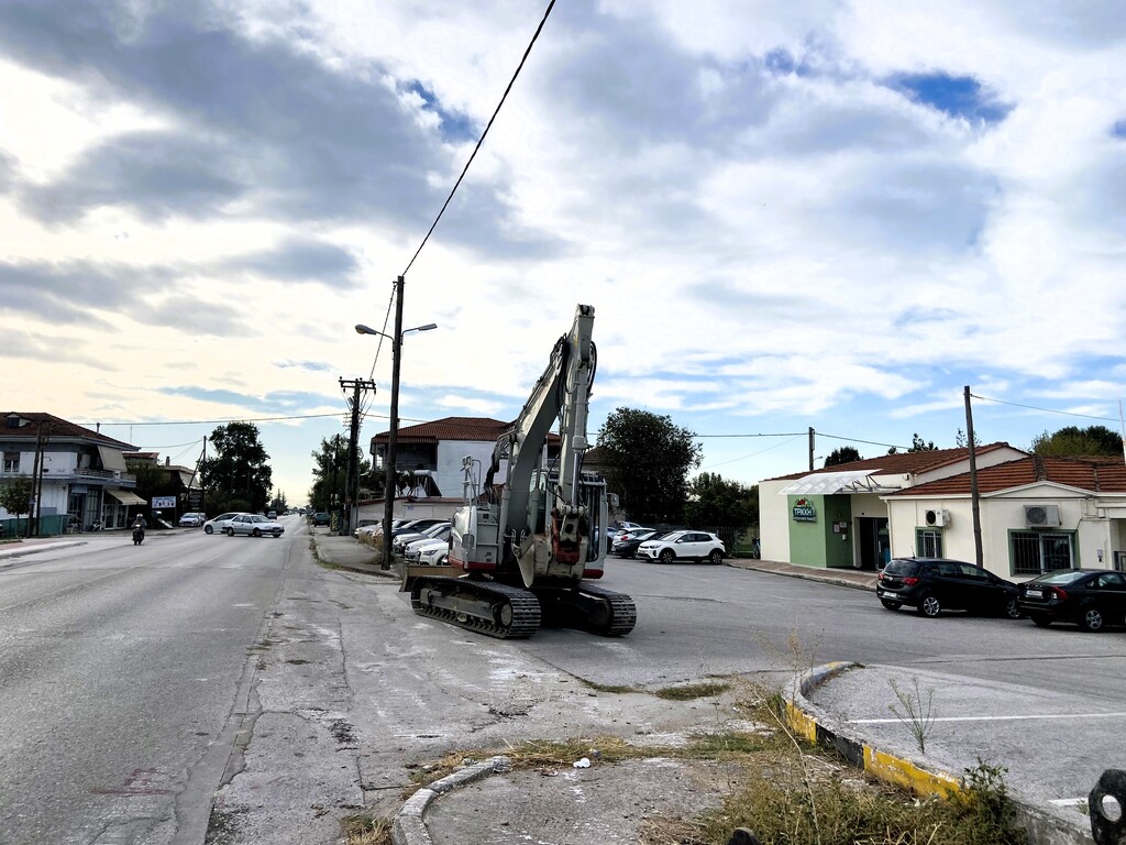 Πλέον η εταιρεία «ΗΡΩΝ» που ανέλαβε τον έργο, βρίσκεται στην οδό Καρδίτσης, στη δεξιά της πλευρά, για να ολοκληρώσει την ανάπλαση των πεζοδρομίων για την περιοχή «Εργοστασίου Γάλακτος».