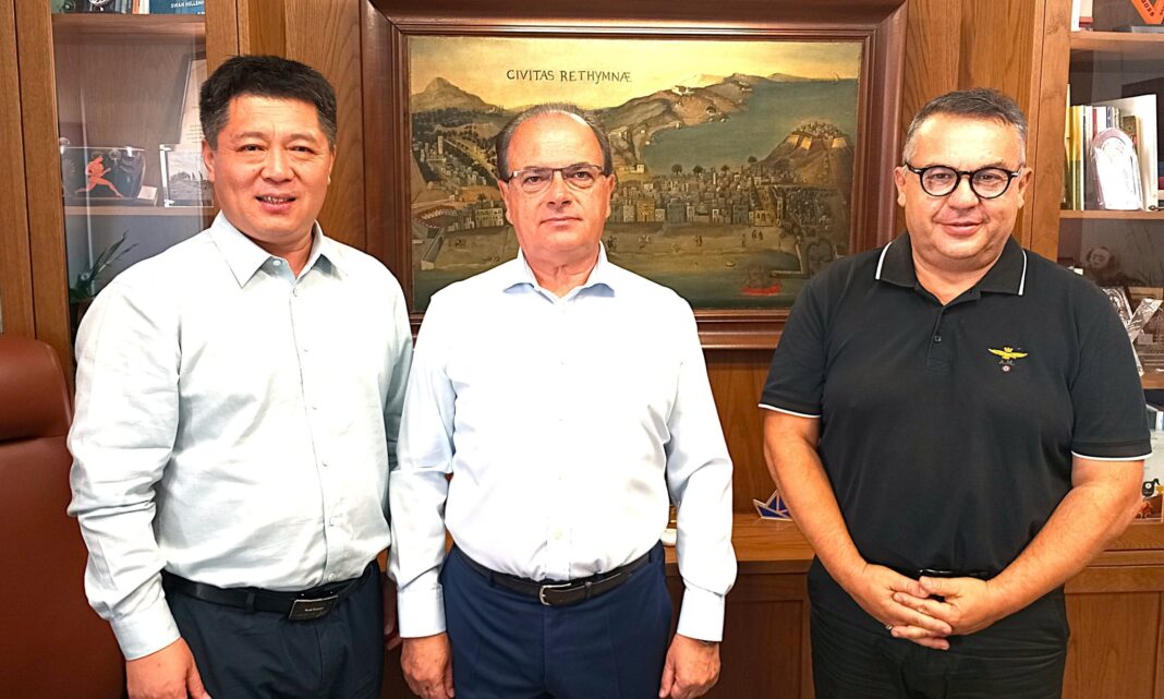 Στο πλαίσιο της συνεργασίας που επίκειται να ξεκινήσει, ο Δήμαρχος Ρεθύμνης κ. Γιώργης Χ. Μαρινάκης υποδέχθηκε σήμερα στο γραφείο του τον Γενικό Γραμματέα του Κέντρου Ελληνικού και Κινεζικού Πολιτισμού Yong Wang.