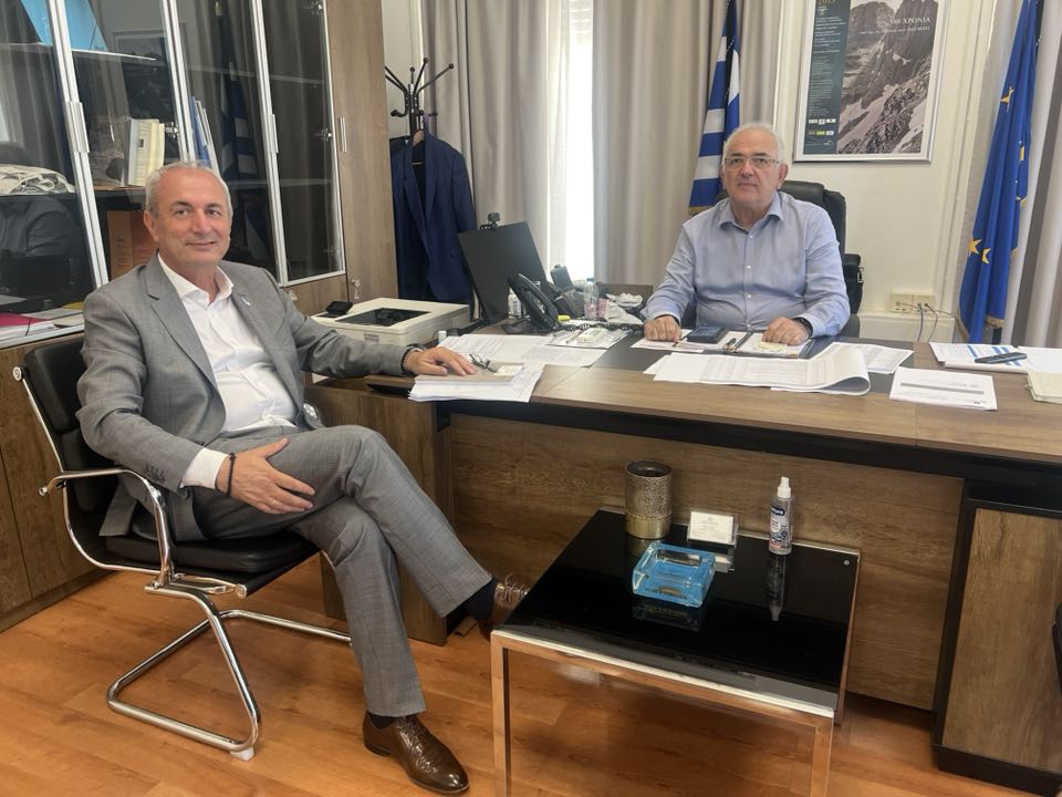 Ο Δήμαρχος Θέρμου, Σπύρος Κωνσταντάρας, συναντήθηκε στην Αθήνα με τον Γενικό Γραμματέα του Υπουργείου Εσωτερικών, Σάββα Χιονίδη, για να συζητήσουν τις δυνατότητες νέων χρηματοδοτήσεων, την πορεία των έργων του προγράμματος «Αντώνης Τρίτσης» και άλλων χρηματοδοτικών εργαλείων για την αυτοδιοίκηση.