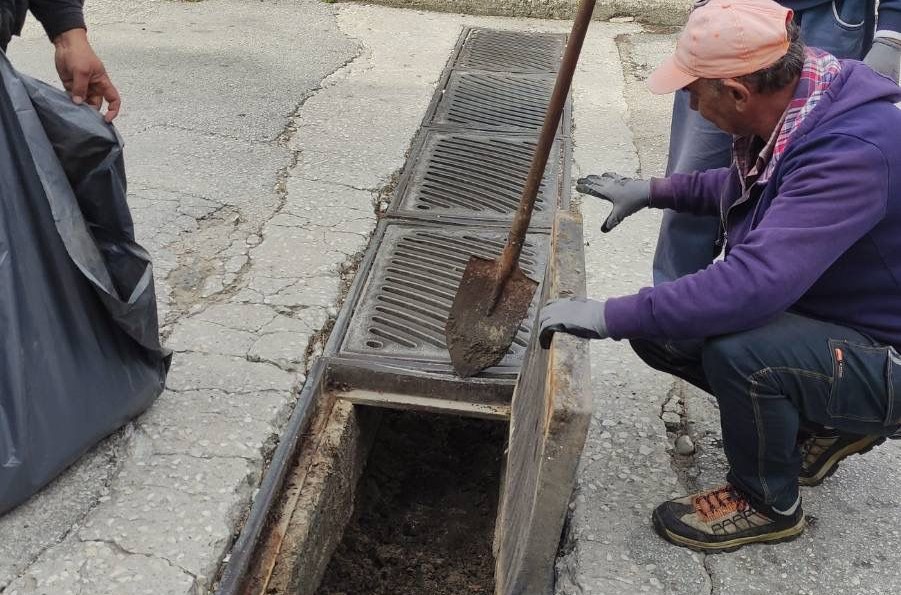 Τα συνεργεία καθαριότητας εργάζονται εντατικά σε κεντρικές περιοχές και γειτονιές, απομακρύνοντας φερτά υλικά που εμποδίζουν τη σωστή λειτουργία του αποχετευτικού δικτύου.