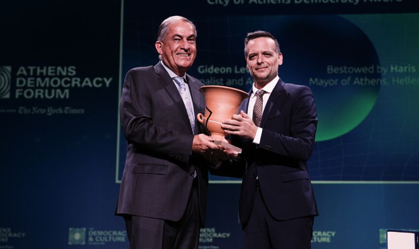 Το Βραβείο Δημοκρατίας 2025 απένειμε ο Δήμαρχος Αθηναίων, Χάρης Δούκας, στον Ισραηλινό δημοσιογράφο και συγγραφέα, Γκίντεον Λέβι, κατά τη διάρκεια τελετής, που πραγματοποιήθηκε την Τετάρτη 1 Οκτωβρίου, στο Ολύμπια, Δημοτικό Μουσικό Θέατρο «Μαρία Κάλλας».