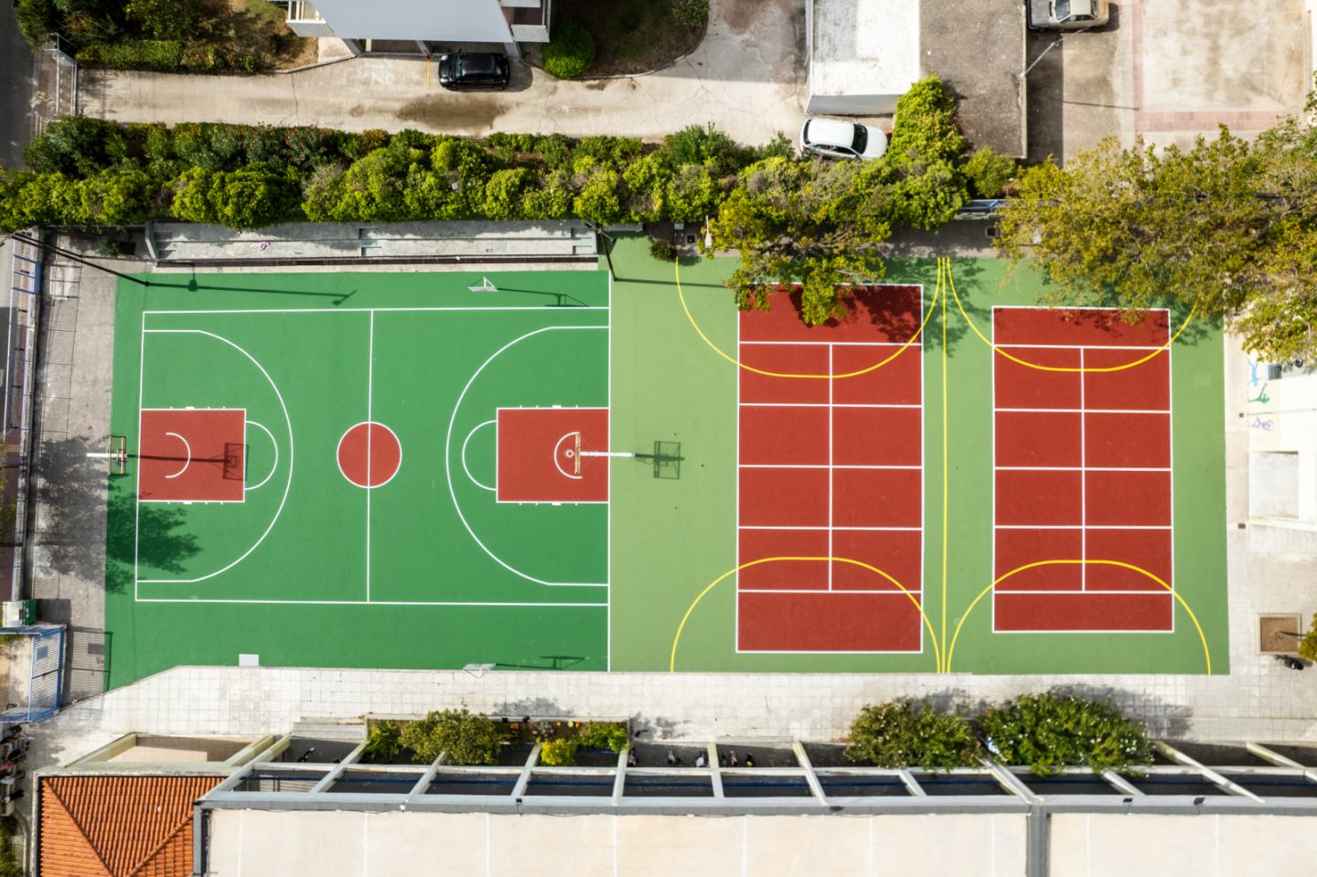 - Αντικαταστάθηκαν οι φθαρμένοι τάπητες με σύγχρονους και αντιολισθητικούς, ενώ τα γήπεδα διαμορφώθηκαν και διαγράμμισαν.
