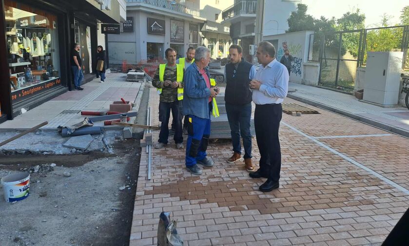 Ο Δήμαρχος Θανάσης Βασιλόπουλος, συνοδευόμενος από τον Αντιδήμαρχο Βασίλη Κουτραφούρη, επιθεώρησε τις εργασίες, οι οποίες περιλαμβάνουν την επίστρωση με κυβόλιθους και θα επεκταθούν σε παρακείμενους δρόμους.