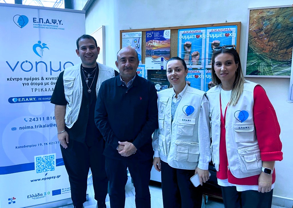 • από τον Ξενώνα Μακράς Παραμονής Τρικάλων «ΠΥΞΙΔΑ», η ψυχολόγος κ. Κωνσταντίνα Σκόρδα, η νσηλεύτρια κ. Γεωργία Ασκητή και ένοικος της δομής