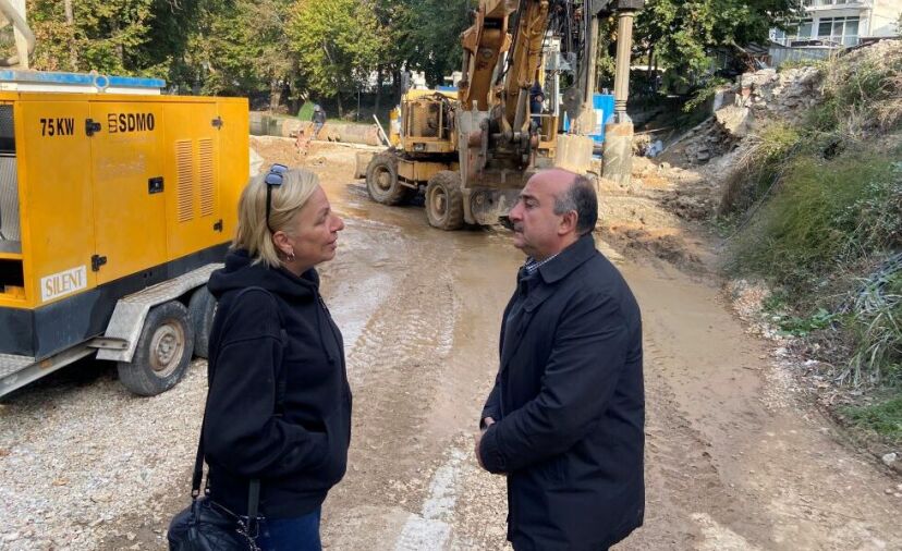 - Συνομίλησε με την υπεύθυνη μηχανικό, Αθηνά Μαράβα, και τους εργαζόμενους στο εργοτάξιο.