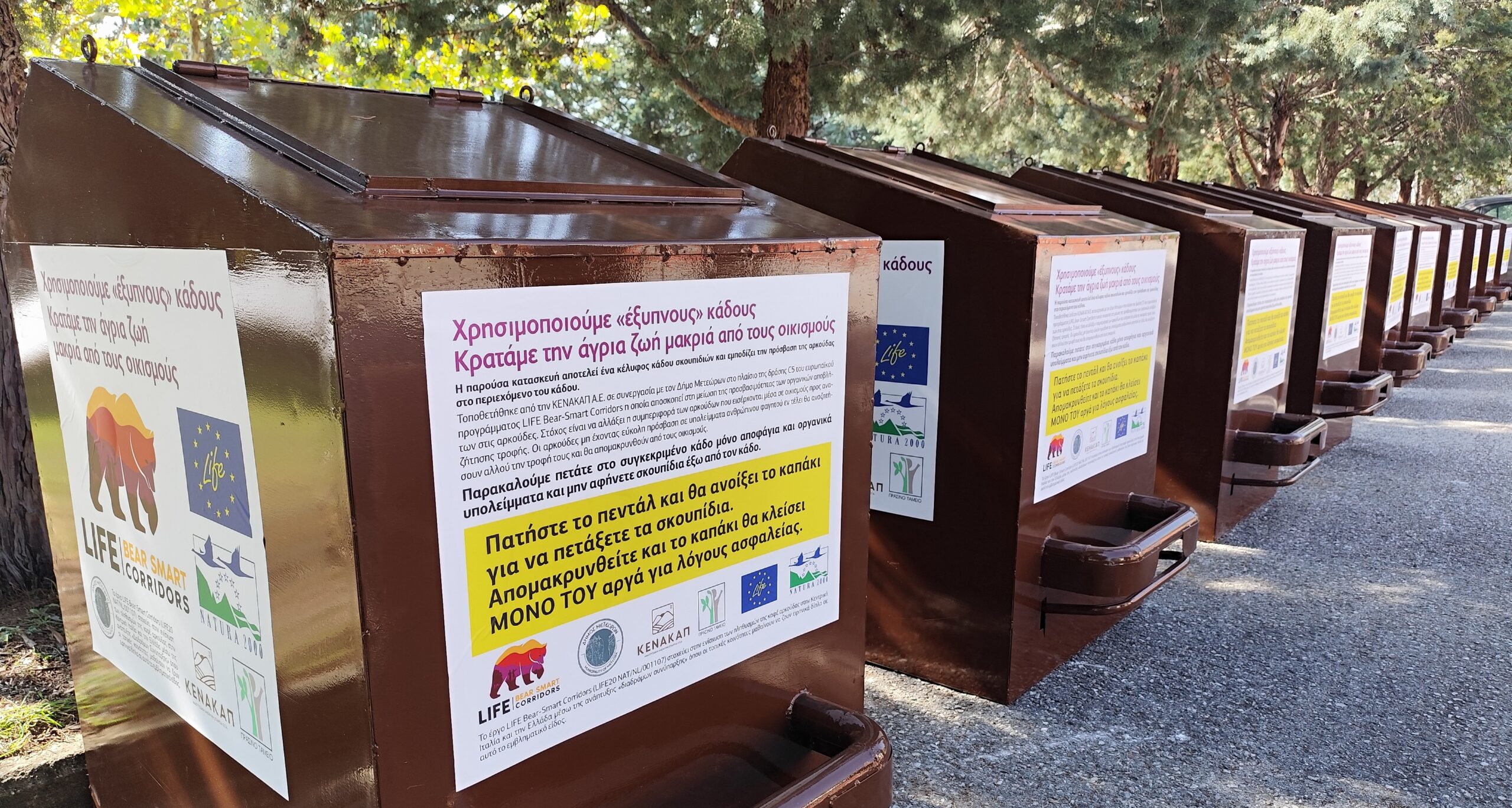 Ο Δήμος Μετεώρων, στο πλαίσιο της διαρκούς προσπάθειας για την προστασία του φυσικού περιβάλλοντος και τη διασφάλιση της ασφάλειας των κατοίκων, προμηθεύτηκε μέσω της ΚΕΝΑΚΑΠ Α.Ε. δεκαπέντε (15) νέους «έξυπνους» κάδους απορριμμάτων, ειδικά σχεδιασμένους για την αποτροπή πρόσβασης άγριων ζώων, όπως οι αρκούδες.
