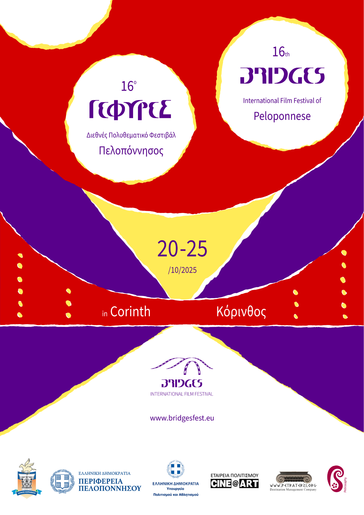 Από το 2008 το Διεθνές Φεστιβάλ Κινηματογράφου «ΓΕΦΥΡΕΣ» πραγματοποιείται σε Κόρινθο, Λουτράκι και Ναύπλιο, με τη δράση ΠΕΛΟΠΟΝΝΗΣΟΣ – ΓΕΦΥΡΕΣ. Το όνομα «ΓΕΦΥΡΕΣ» αποτυπώνει τον διττό συμβολισμό της τέχνης μας: τη δύναμη του κινηματογράφου να ενώνει λαούς, πολιτισμούς και κοινωνίες, καθώς και τη συνεργασία μας με διεθνή φεστιβάλ και πολιτιστικούς φορείς.
