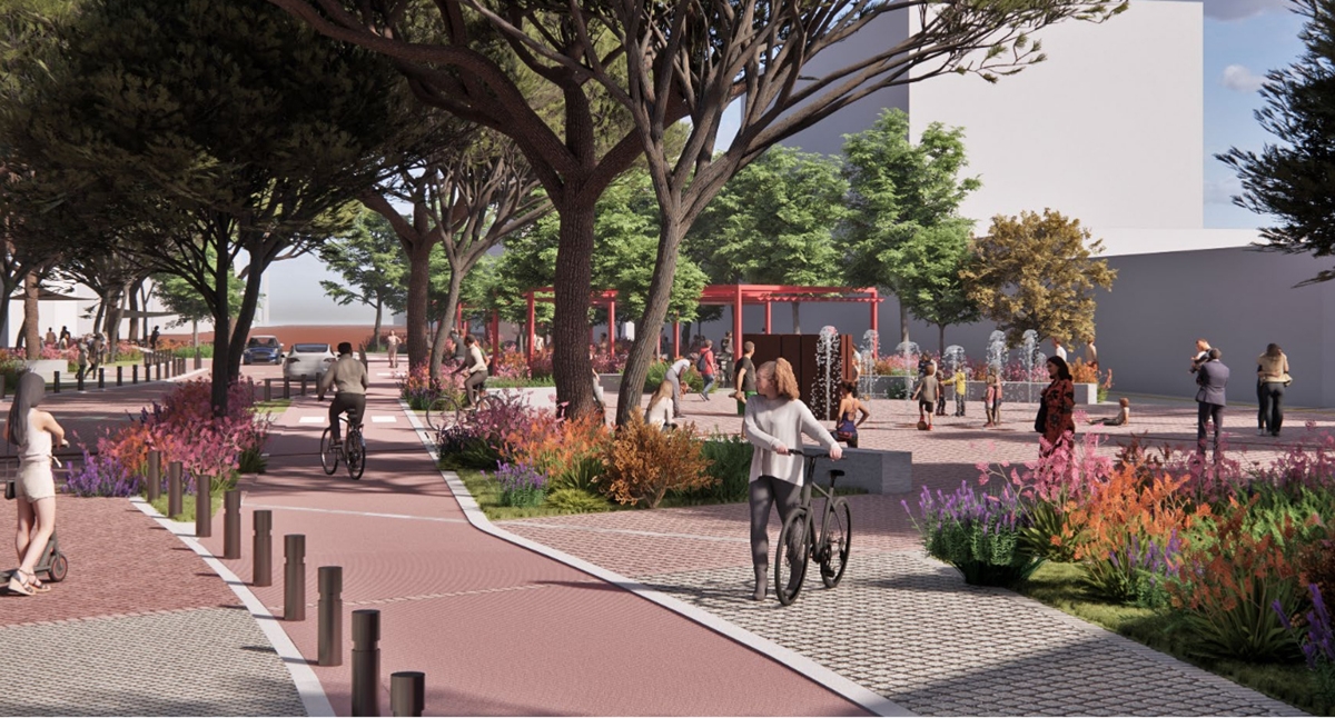 - Η ανακατασκευή περιλαμβάνει τη δημιουργία διαδρομών περιπάτου και περιορισμό της κυκλοφορίας αυτοκινήτων, για ασφαλή χρήση από πεζούς και οικογένειες.