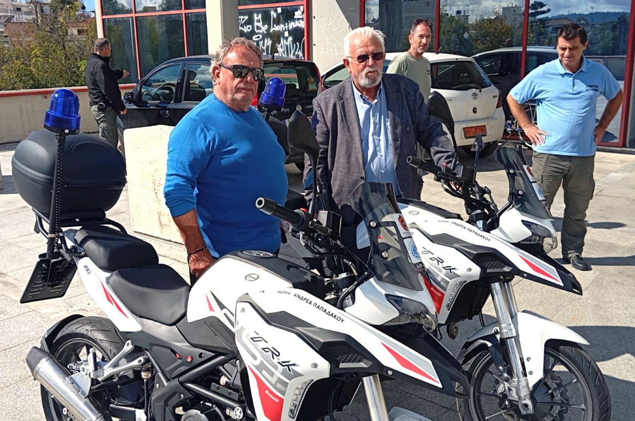 • Ο Ανδρέας Παπαδάκος δωρίζει δύο μοτοσικλέτες στη Δημοτική Αστυνομία Ήλιδας για τον εκσυγχρονισμό της υπηρεσίας.